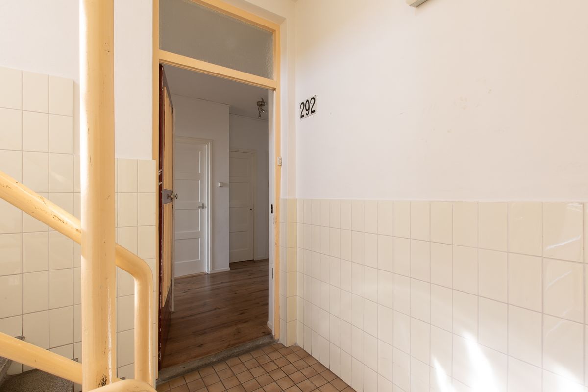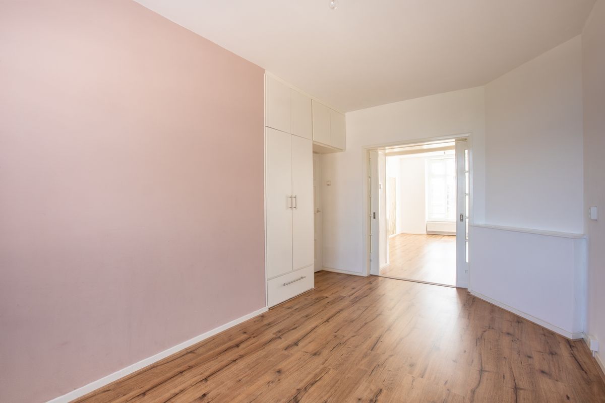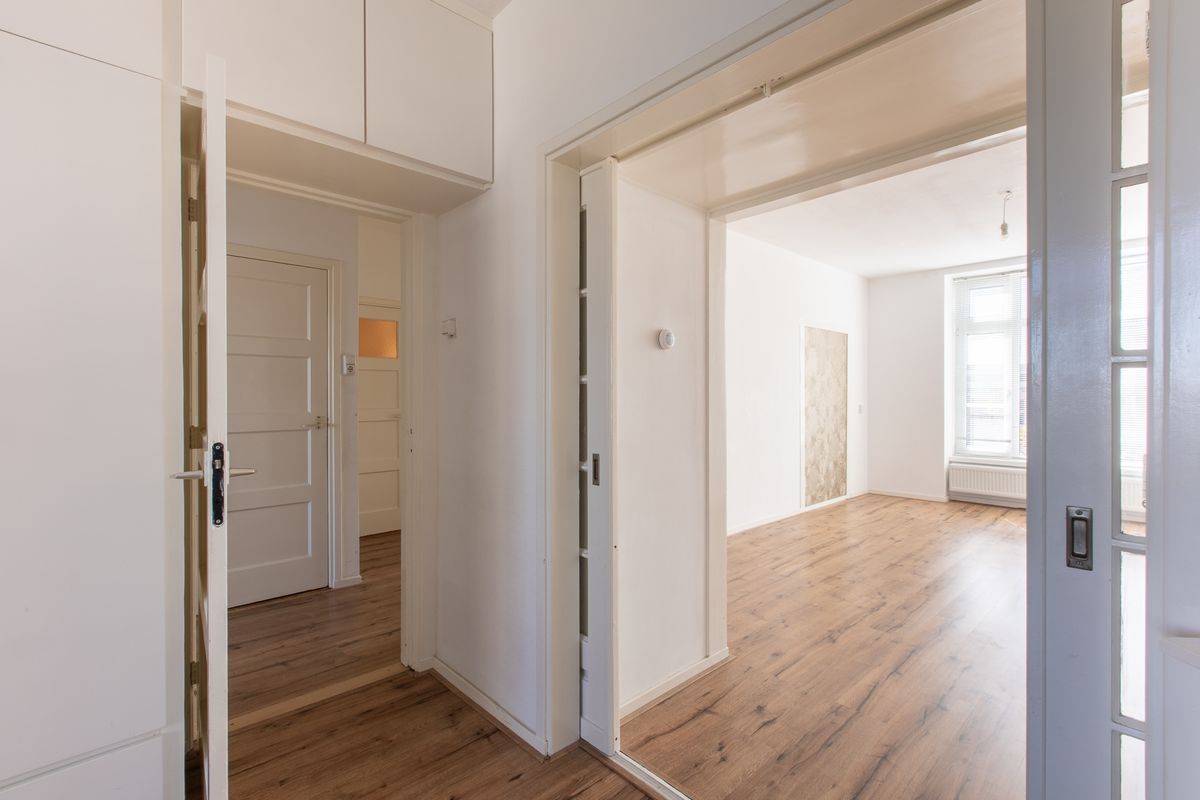 Tweede etage: Voordeur; hal met overloop met daar aan gelegen de zonnige woonkamer-en-suite, een voorslaapkamer, een achterslaapkamer, de keuken , de badkamer, een toiletruimte en de meterkast. De woonkamer en suite beschikt nog over de originele schuifdeuren uit de jaren '50. De badkamer is ook bereikbaar via de achterslaapkamer en bevat een douche en een wastafel. De keuken is voorzien van een 4-pits gasfornuis, oven en afzuigkap. Hier bevindt zich ook de opstelplaats van de c.v.-ketel. Ook heeft dit appartement een achterbalkon over de volle breedte van de woning, die bereikbaar is vanuit de achterkamer van de kamer-en-suite, de keuken en de achterslaapkamer. Het balkon is gelegen op het oosten, waardoor u er heerlijk kunt genieten van de ochtendzon en van de koelte in de avond.