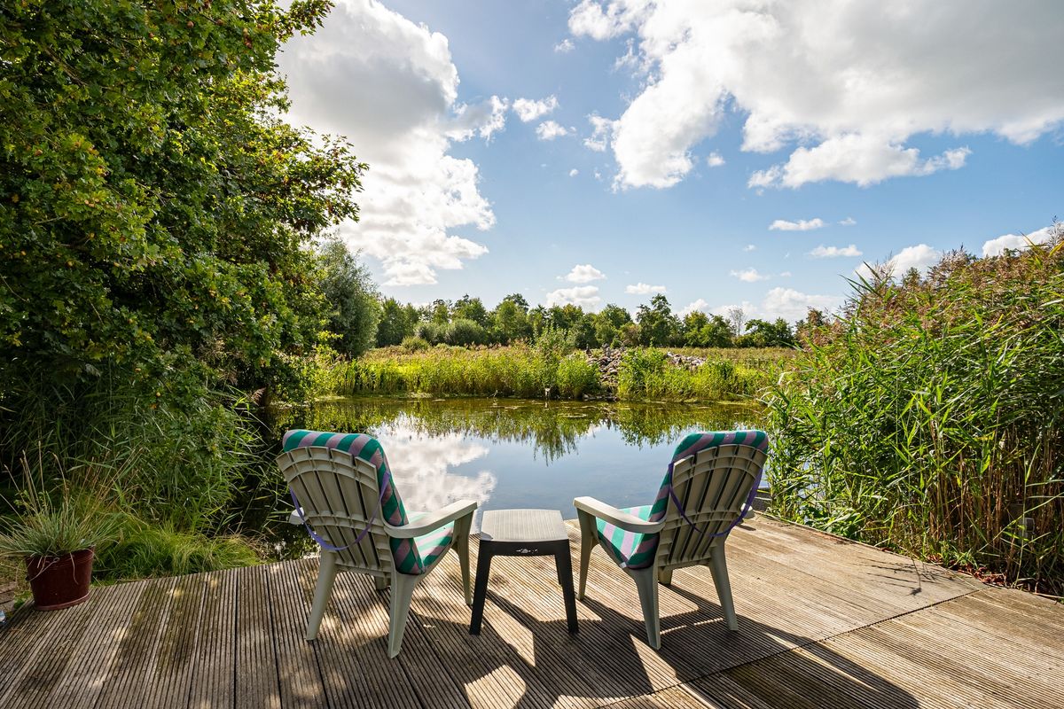 Heerlijke wandeltuin met diverse paden waar u of gebruikers van de zaalhuur kunnen ontspannen en genieten van de mooie natuur. De overkapping en het zitten aan de vijver geven een extra dimensie van het woongenot of de gebruikers van de zaalhuur.