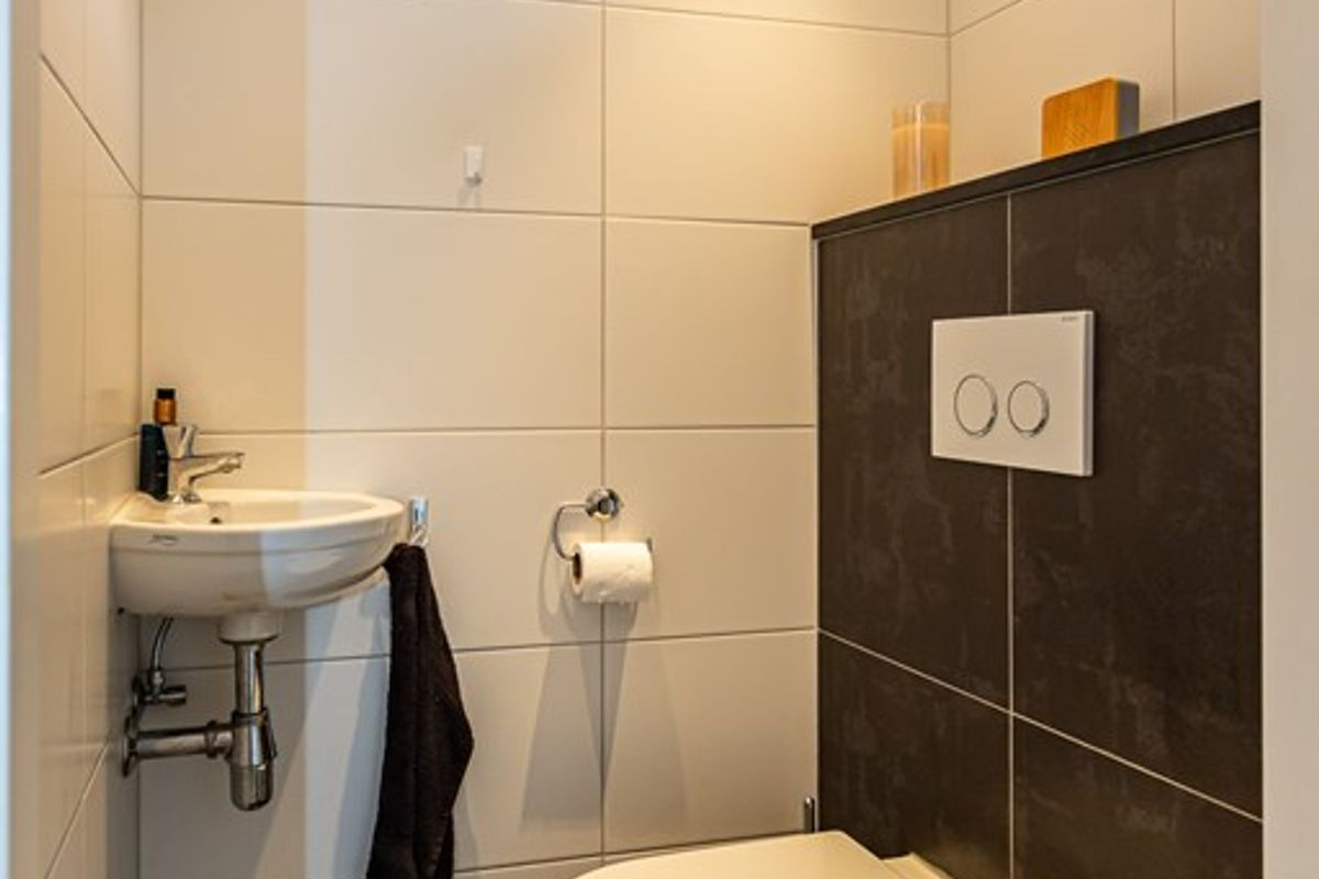 Overloop met bergkast, 2 royale slaapkamers (op eenvoudige wijze zijn weer drie slaapkamers te realiseren), luxe badkamer met inloopdouche, vaste wastafel in badkamer-meubel, 2e toilet en designradiator.