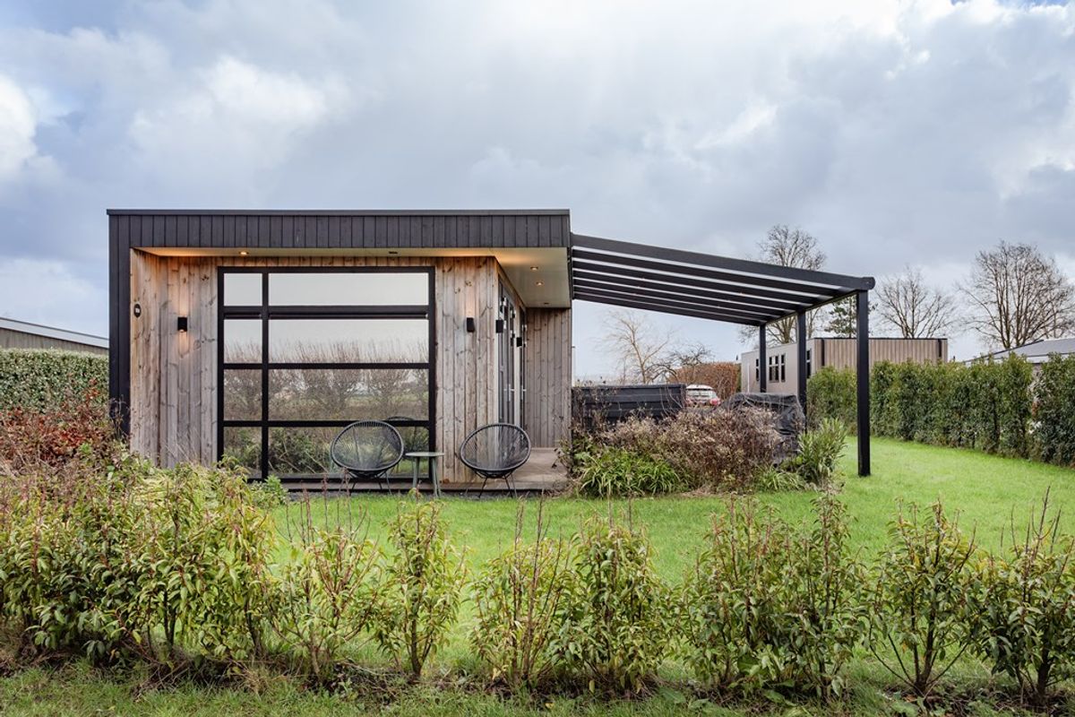 Fijne en zonnig gelegen tuin waar u de hele dag van de zon kan genieten. In de zomer van 2024 is de stijlvolle overkapping met verlichting geplaatst waar het ook ’s avonds heel prettig en gezellig vertoeven is. Rondom de woning is een grindpad aangelegd en de gevelbekleding is uitgevoerd in stijlvol gekleurd hout met buitenlampjes en een buitenkraan. Ook de verlichting in het overstek geeft een sfeervolle uitstraling aan de woning.