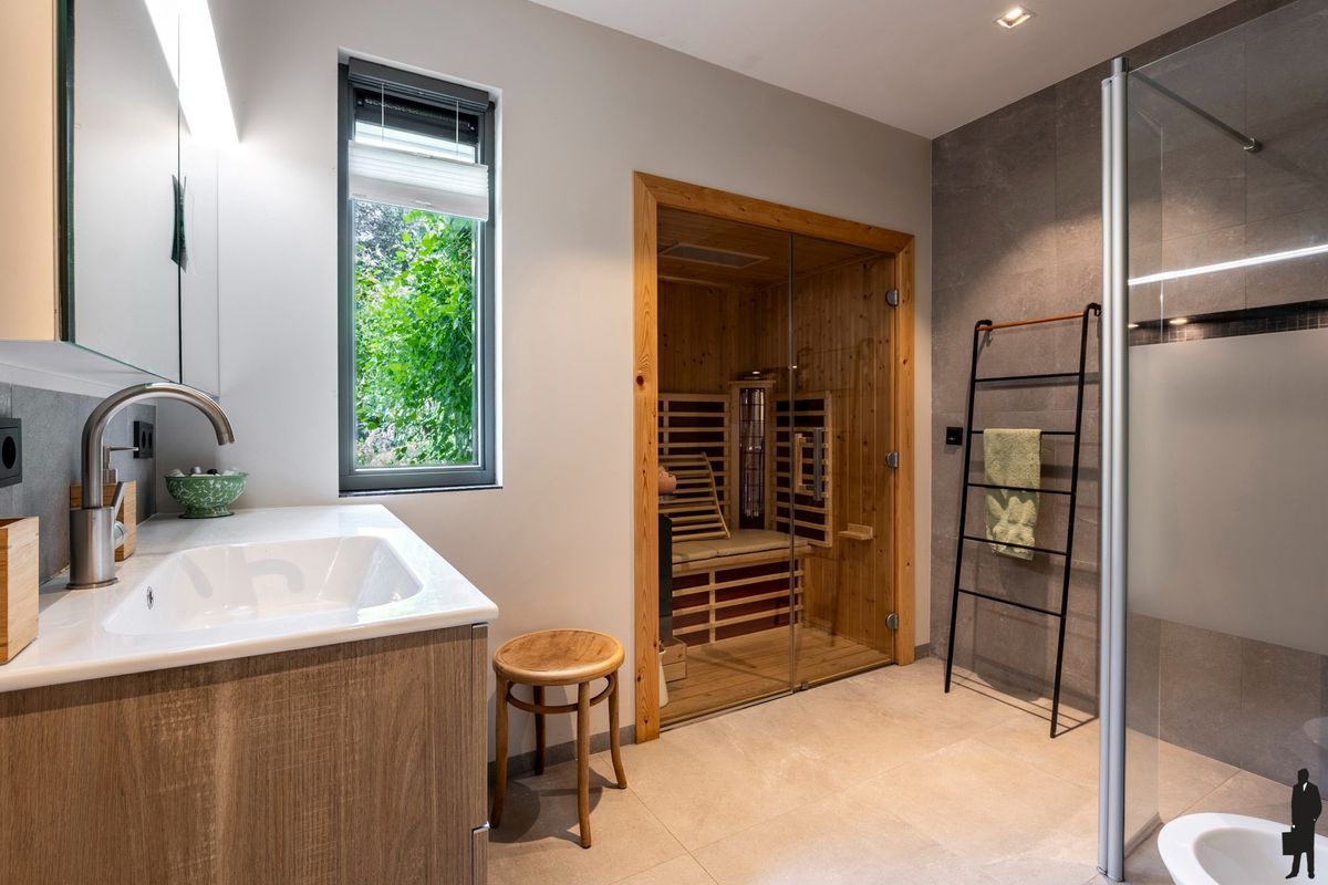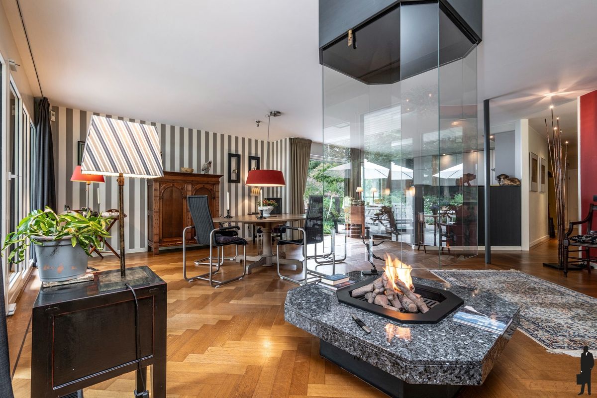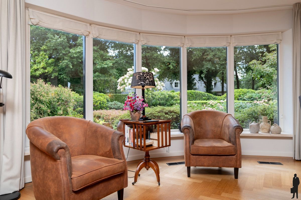De vele ramen, openslaande deuren en schuifpui, zorgen voor een overvloed aan daglicht en brengen het groen van de omliggende tuin tot binnen.