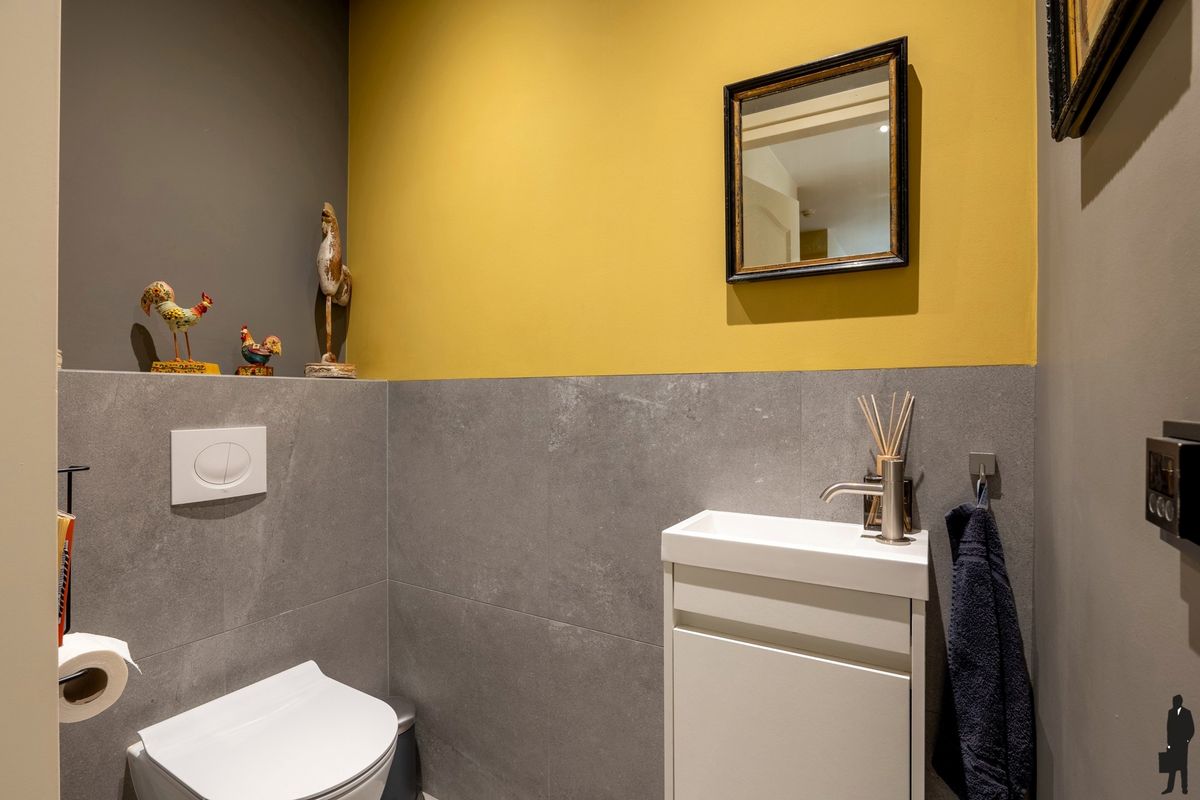 In de grote open woonkamer is nu een zithoek aan de straatzijde gecreëerd, waarbij de open gashaard, het eetgedeelte en de open keuken visueel van elkaar scheidt. De grote leefruimte laat echter vele indelingen toe.