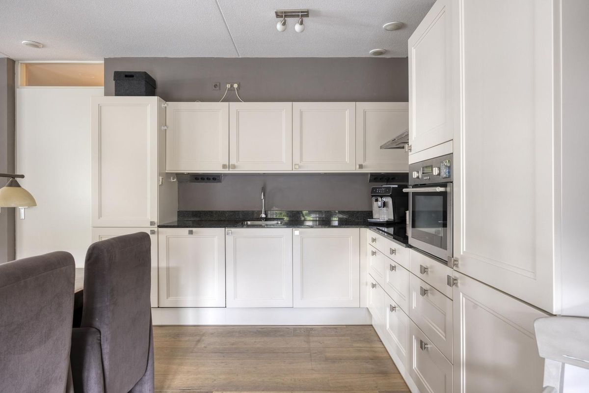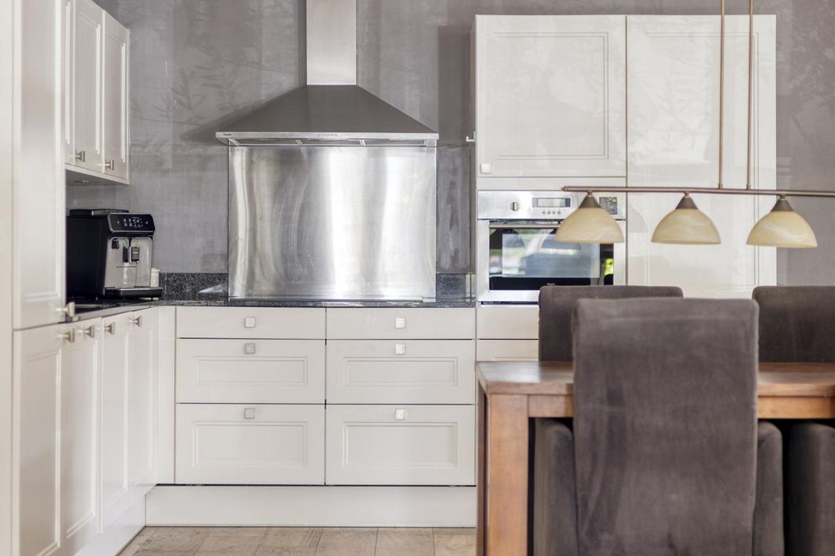 * Moderne open keuken voorzien van hardstenen aanrechtblad, kookplaat, RVS afzuigkap, combi-oven/magnetron, koel-/vriescombinatie en vaatwasser.