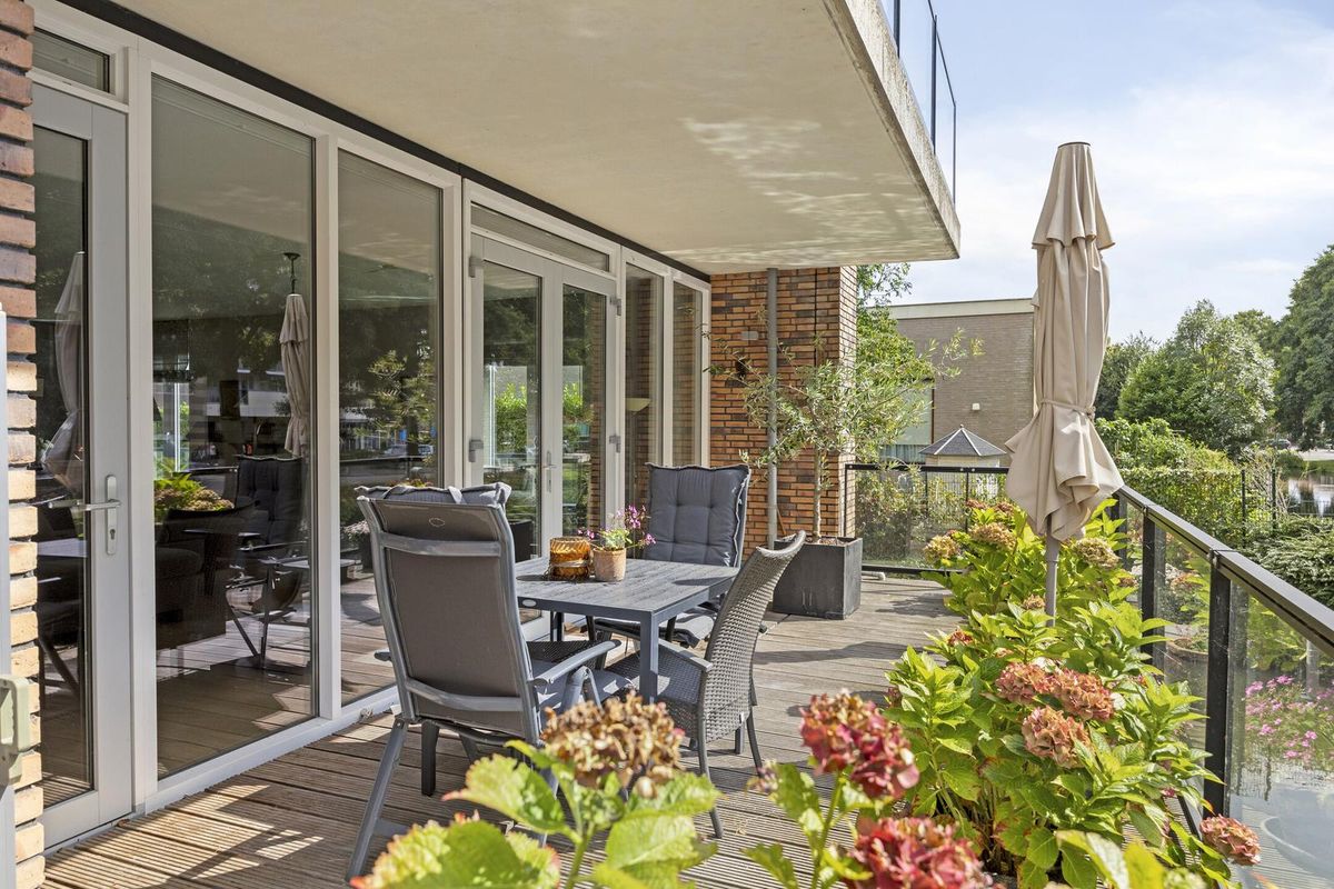 * Zonnig (Z/W) balkon van ca. 32 m2 aan het water gelegen met prachtig vrij uitzicht.