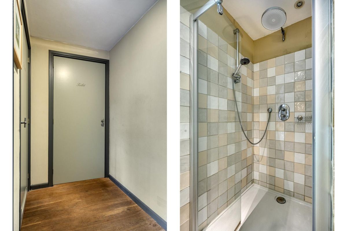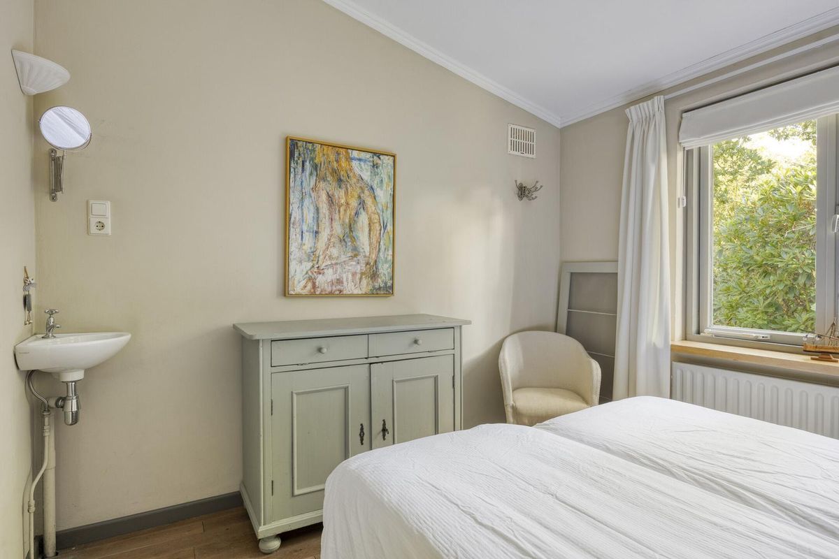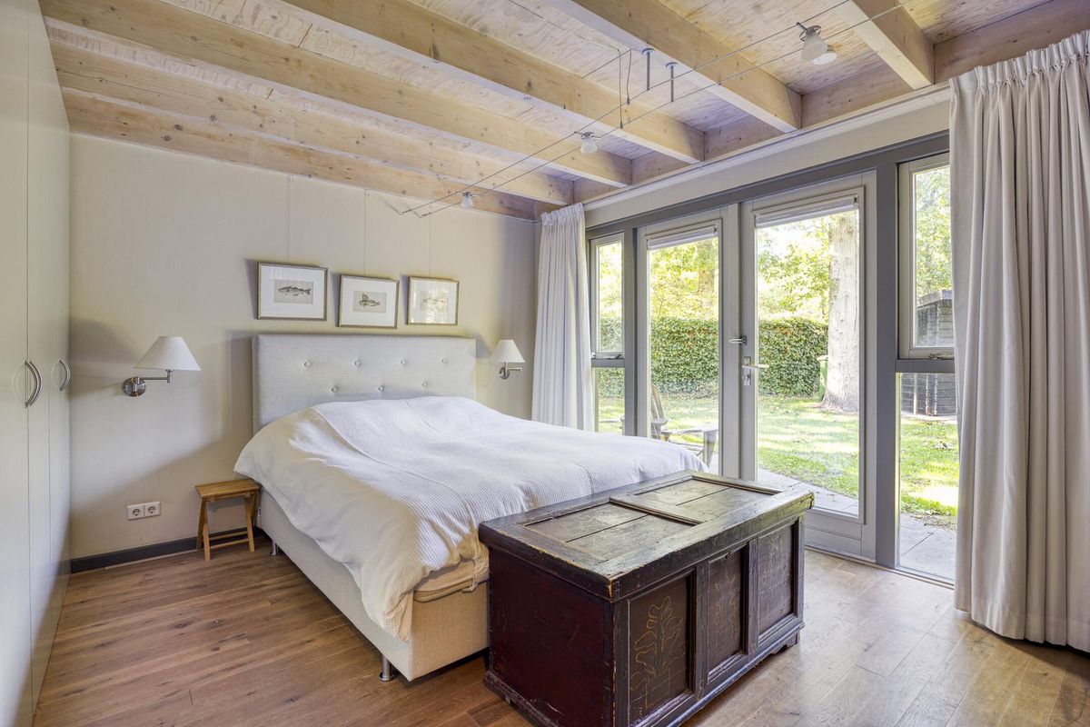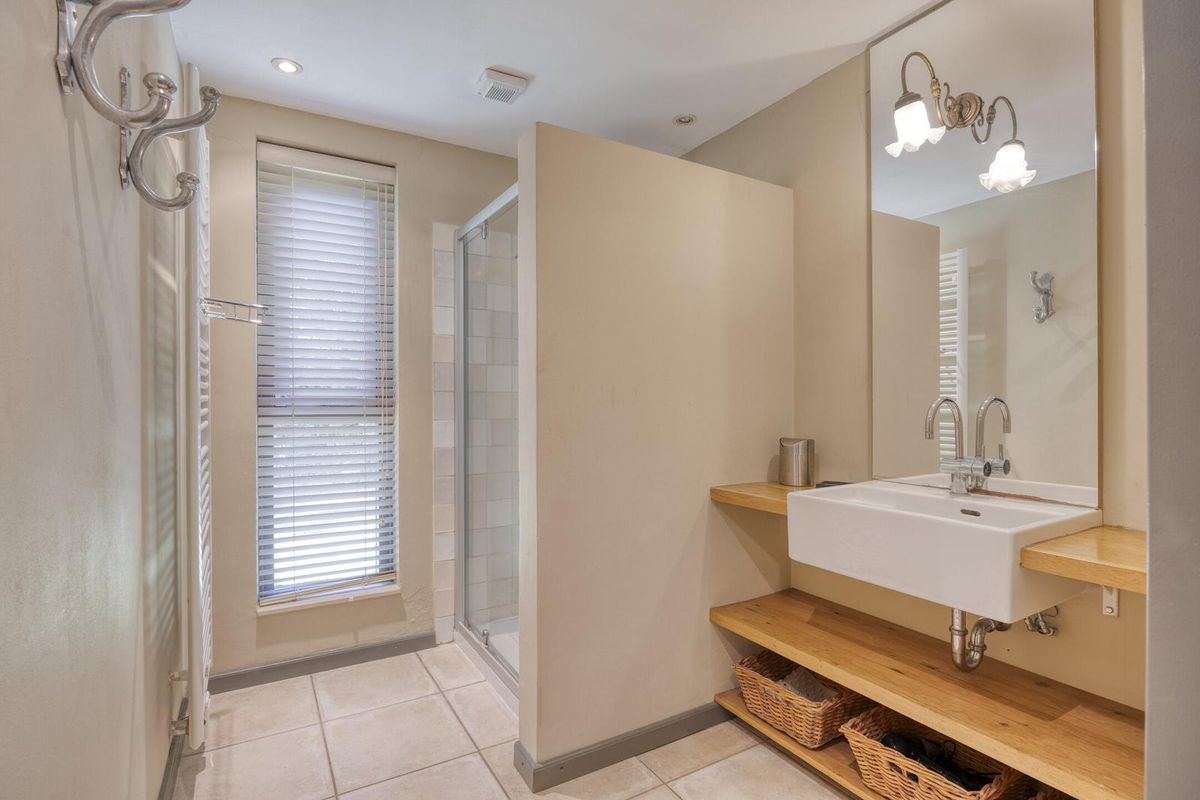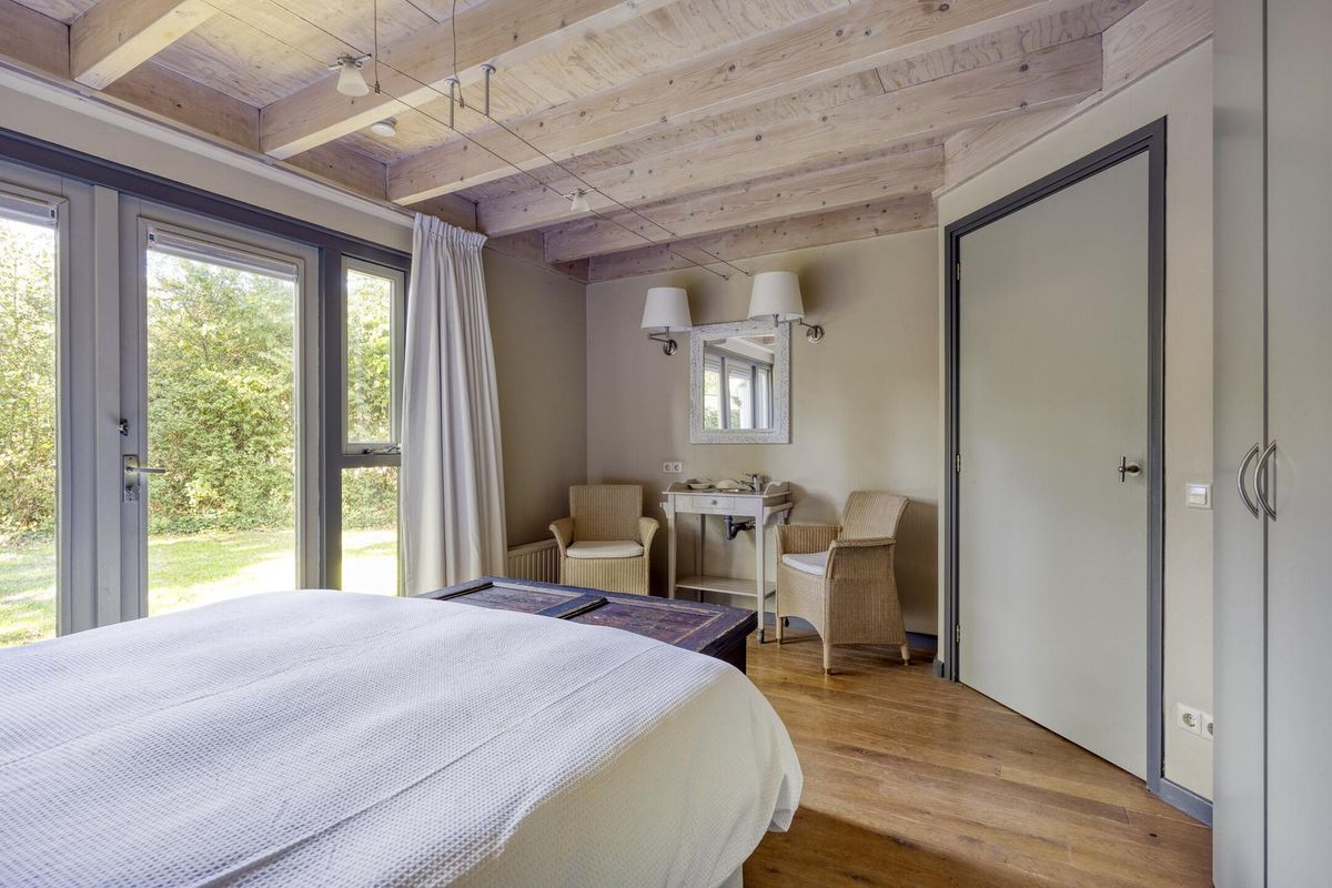 Via de andere deur is toegang tot de masterbedroom welke openslaande deuren heeft naar de tuin. Hier bevindt zich ook de badkamer en het toilet. De badkamer is voorzien van douche en wastafelmeubel met grote spiegel.