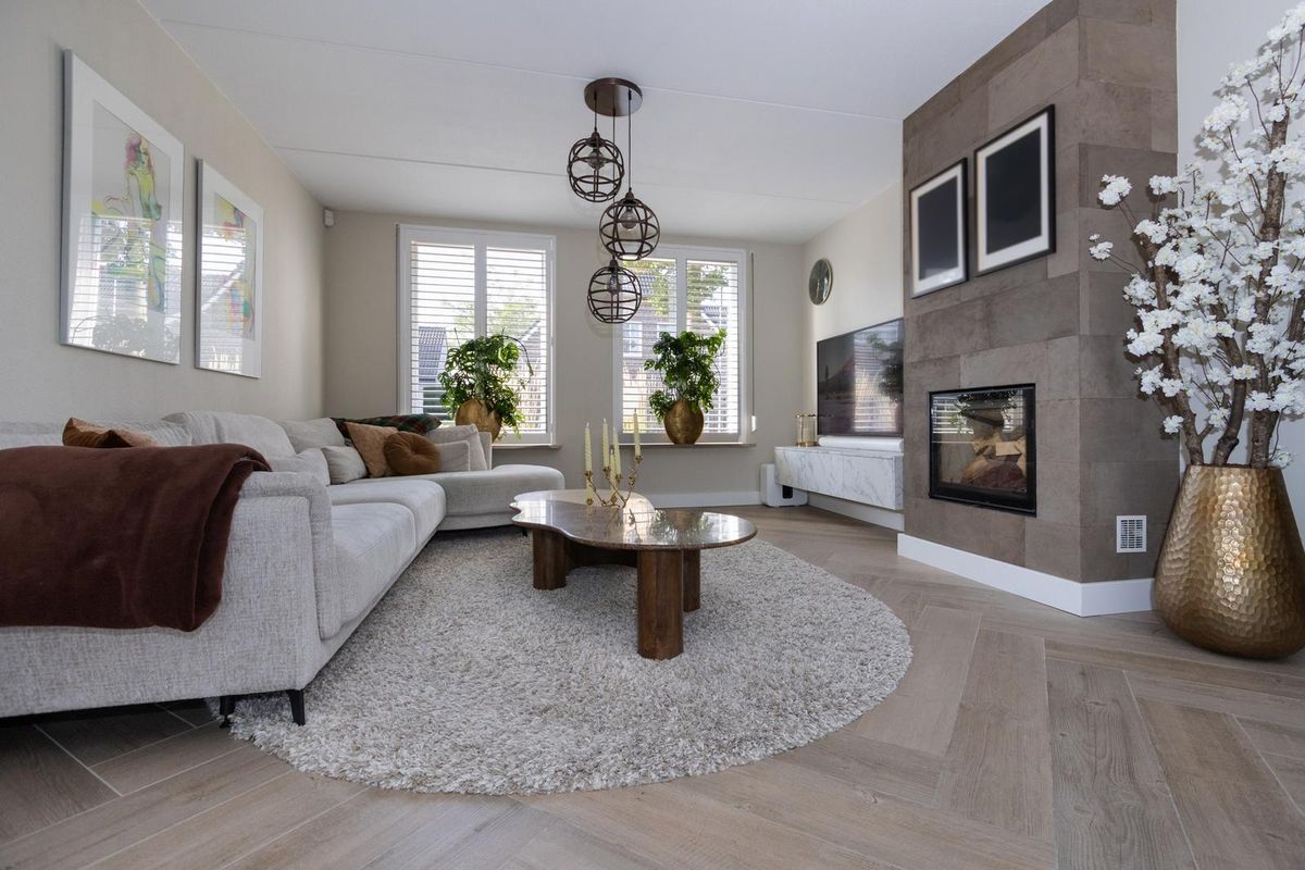 De gehele begane grond is in 2023 voorzien van vloerverwarming en een luxe vloertegel in visgraatpatroon, wat zorgt voor een warme en nette uitstraling.