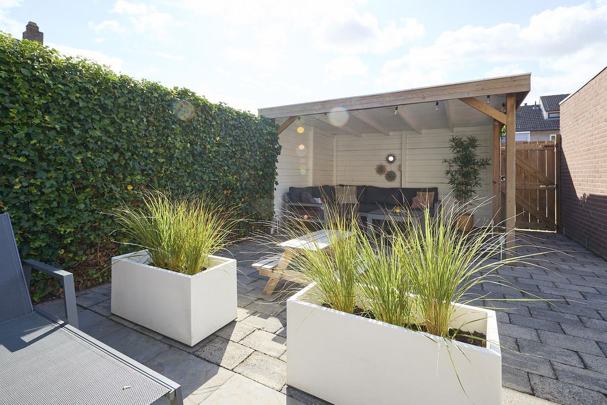 De grotendeels betegelde achtertuin is onderhoudsvriendelijk aangelegd en beschikt over een sfeervolle terrasoverkapping waar u in elk seizoen kunt genieten van het buitenleven. Daarnaast vindt u er een ruime stenen berging voorzien van elektra en een handige achterom naar de brandgang.
