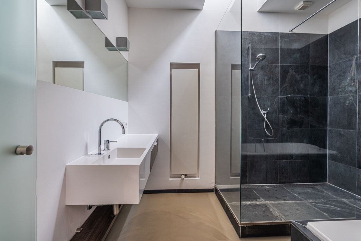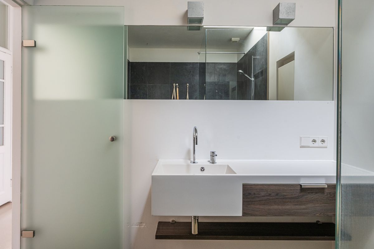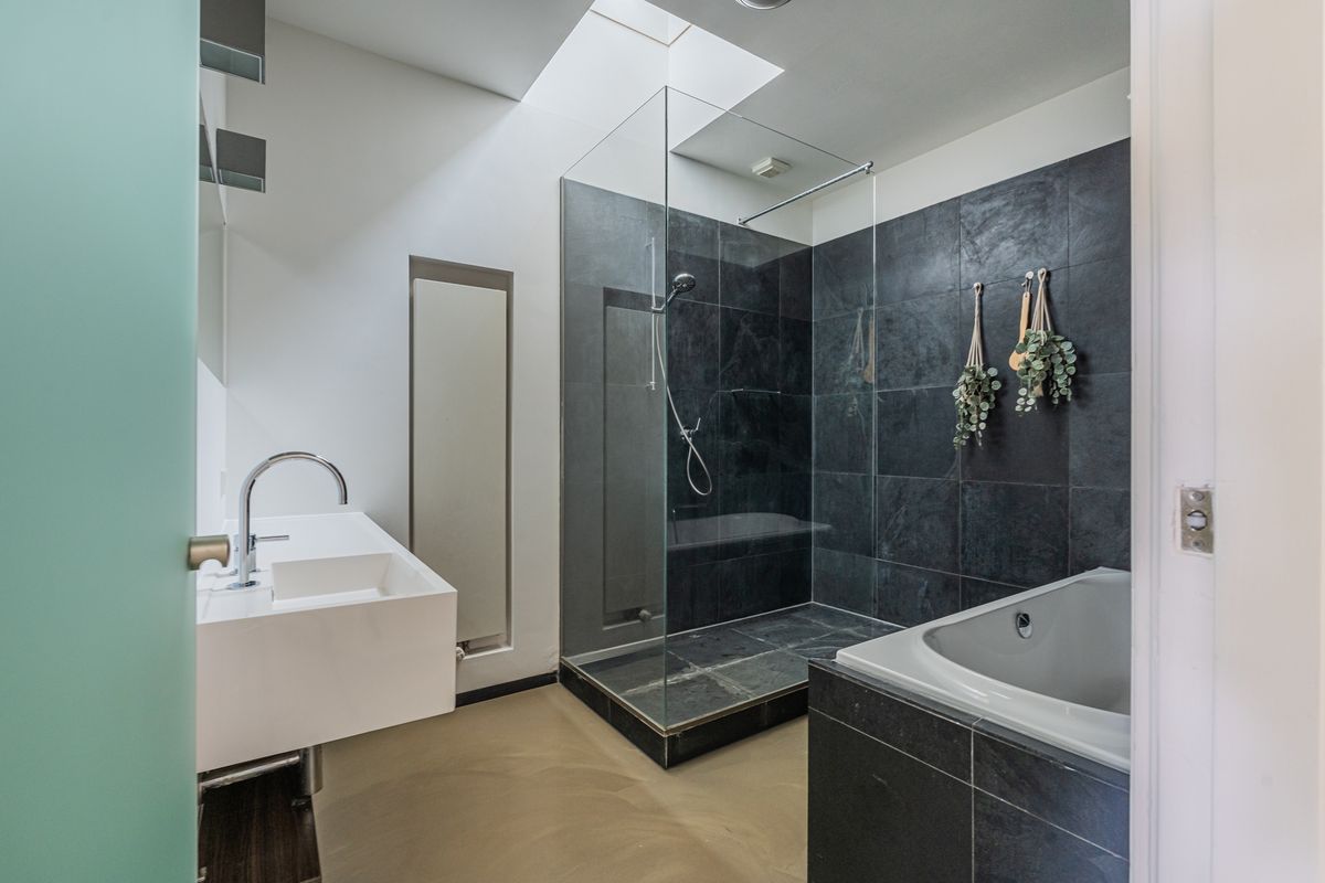 De luxe badkamer is centraal gelegen en beschikt over een ruime inloopdouche, een ligbad en een modern wastafelmeubel. Aan de rustige achterzijde liggen nog twee slaapkamers, waarvan één voorzien van een inloopkast.