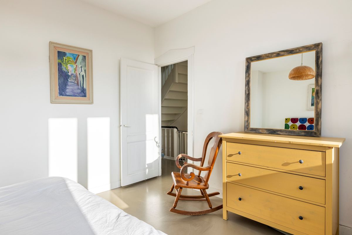 Een prachtige lichte doorzonkamer met een kleine pantry voorzien van wateraansluiting. Via schuifpuien aan beide zijden heeft u toegang tot de twee dakterrassen, beide voorzien van Bankirai-vloerdelen. Een heerlijke plek om te genieten van de zon! Op deze verdieping ligt een eikenhouten vloer.