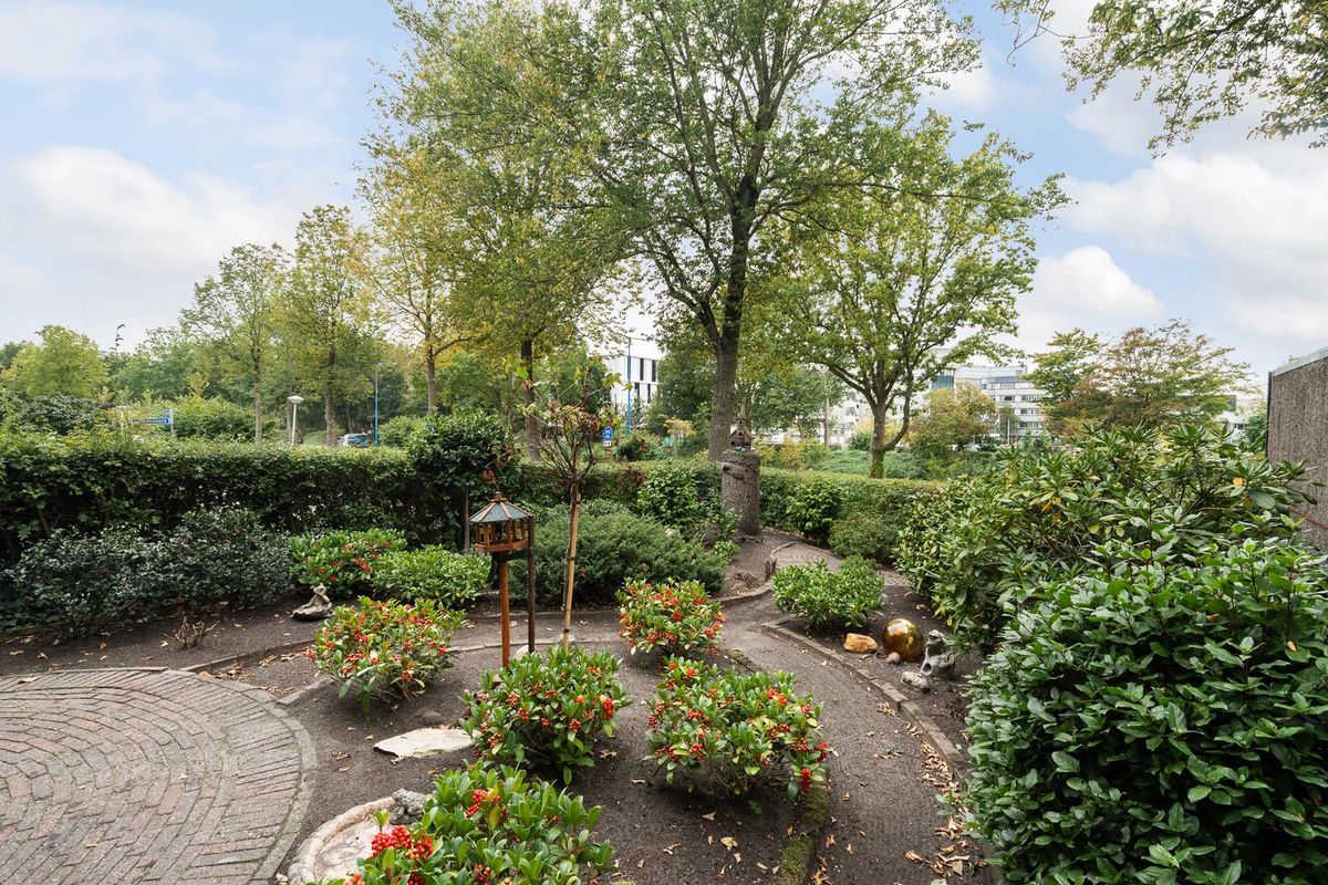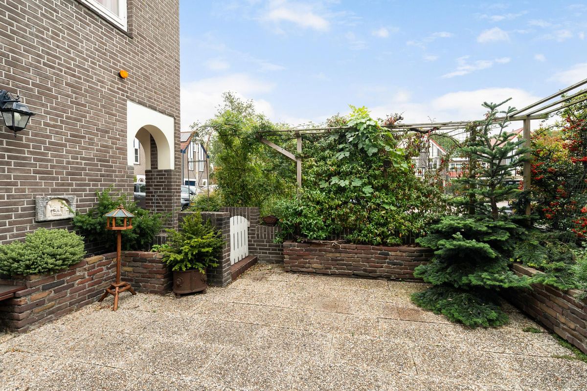 De patiotuin aan de voorzijde heeft een gunstige ligging op het zuidoosten met ochtend- en middagzon, volop privacy en een poortuitgang. Aan de achterzijde van de woning ligt de hoofdtuin met beschutte ligging op het westen voor de middag- en avondzon. Er is een buitenkraan aanwezig.