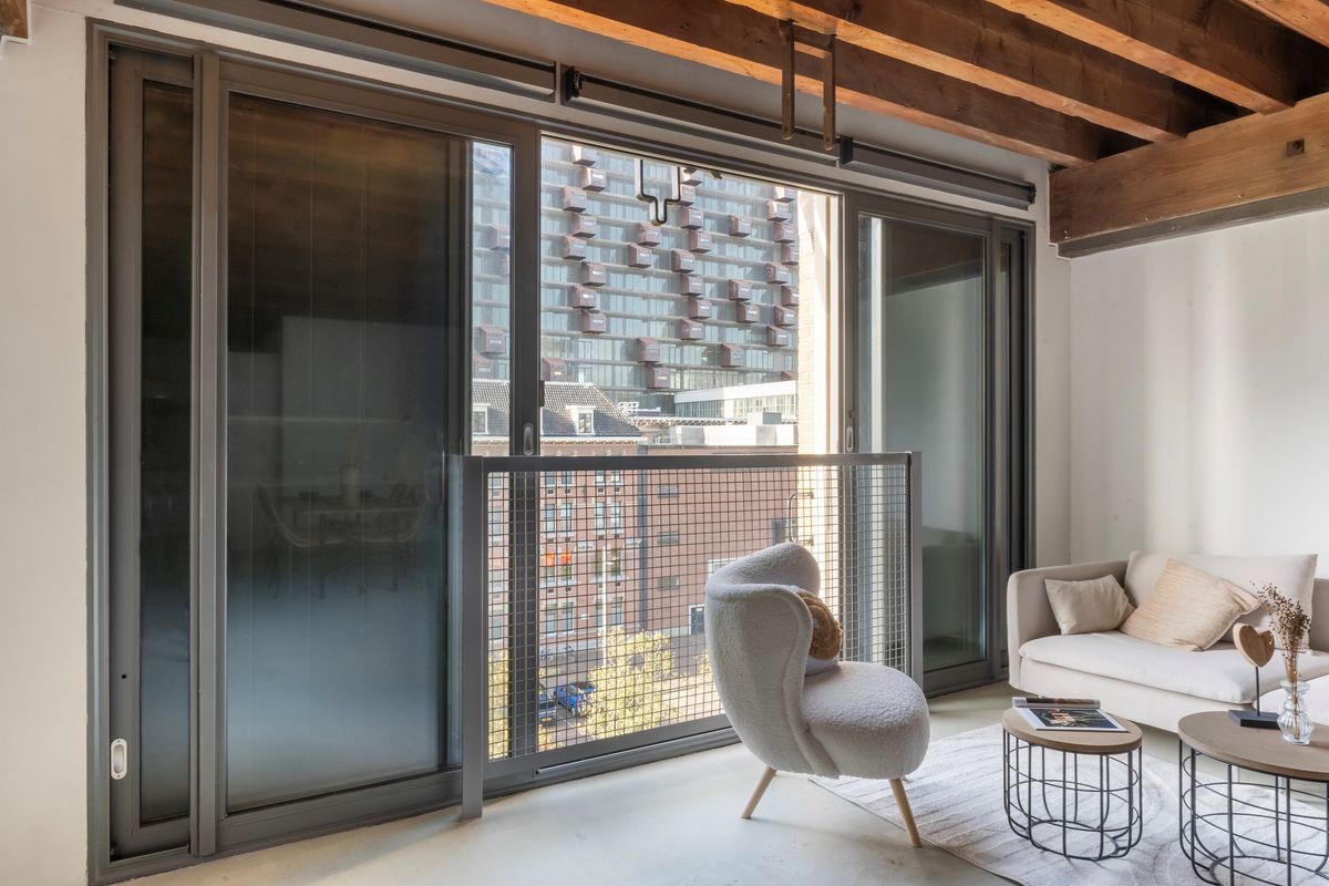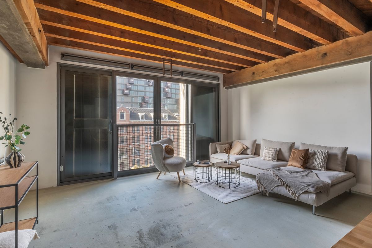 Stap binnen in deze unieke loft op de derde verdieping van het monumentale pakhuis St. Jobsveem, gelegen in het waterrijke Lloydkwartier. De woning telt circa 104 m², beschikt over een luxe keuken, verzorgd sanitair en authentieke details zoals robuuste houten balken, gietijzeren kolommen en originele pakhuisdeuren.