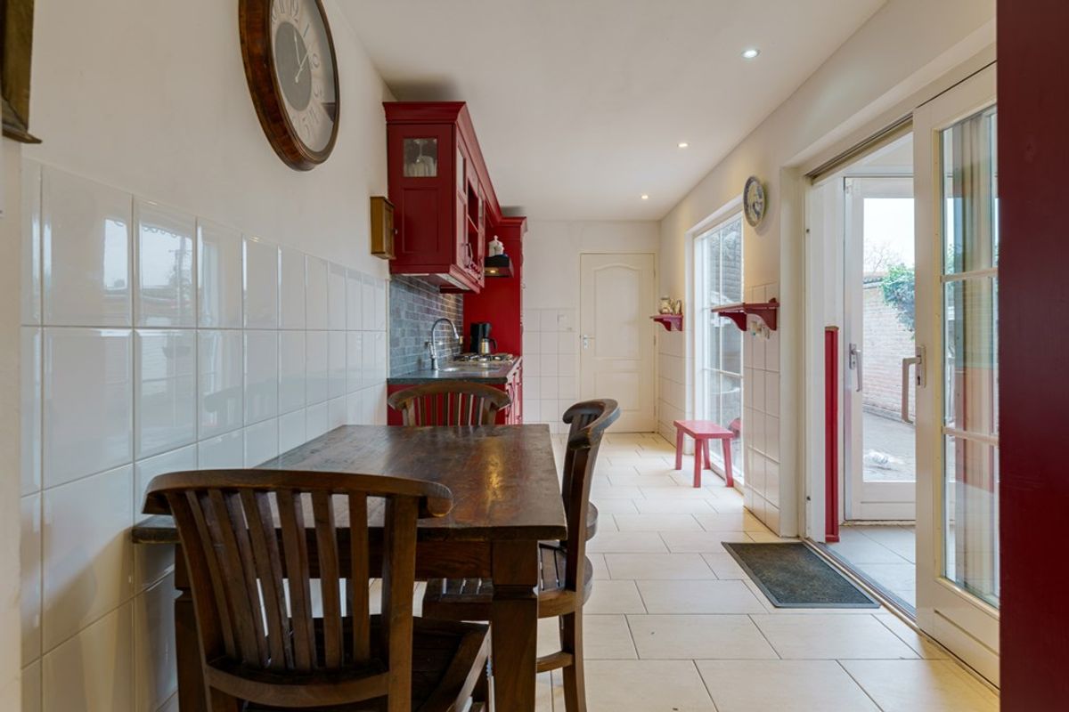 From the kitchen you enter a small rear hall, where the toilet is located on the right. The kitchen also provides access to the conservatory via sliding doors—ideal as an extra seating area where you can enjoy an outdoor feel all year round.