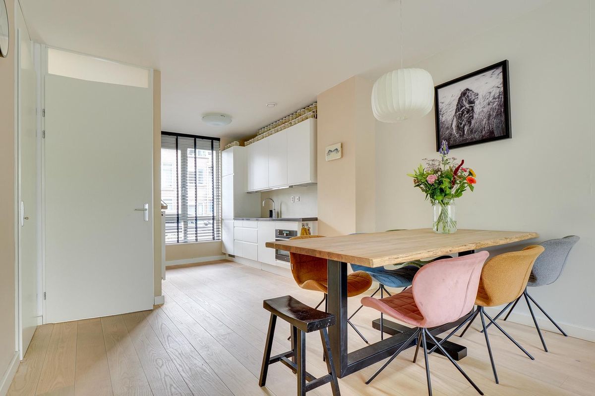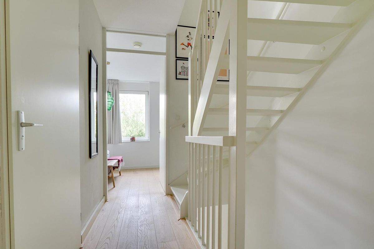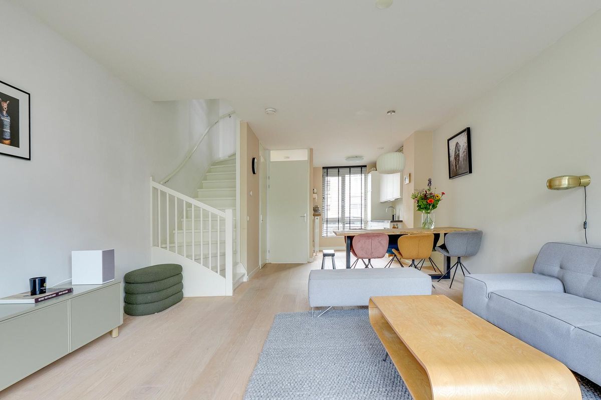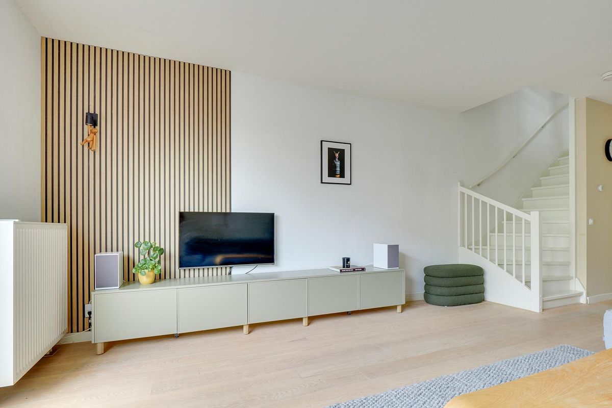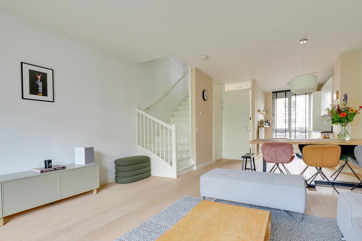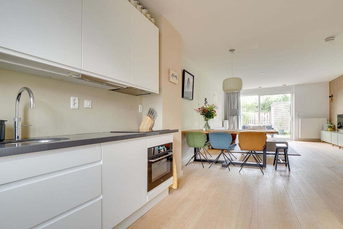 De lichte woonkamer van ca. 31 m² is voorzien van een open trap en grote raampartijen, waardoor er veel daglicht binnenvalt. De open keuken met inbouwapparatuur vormt het hart van de woning. De keuken (uit 2010) is in de afgelopen jaren gemoderniseerd met een nieuwe kookplaat (2025), koelkast (2023), Quooker (2020) en combi-oven (2019) en vaatwasser. Hier kook je met plezier in een eigentijdse, goed uitgeruste ruimte.