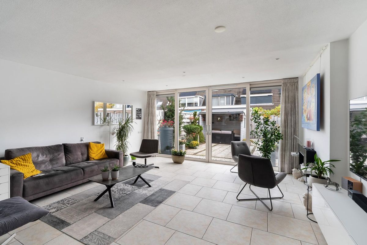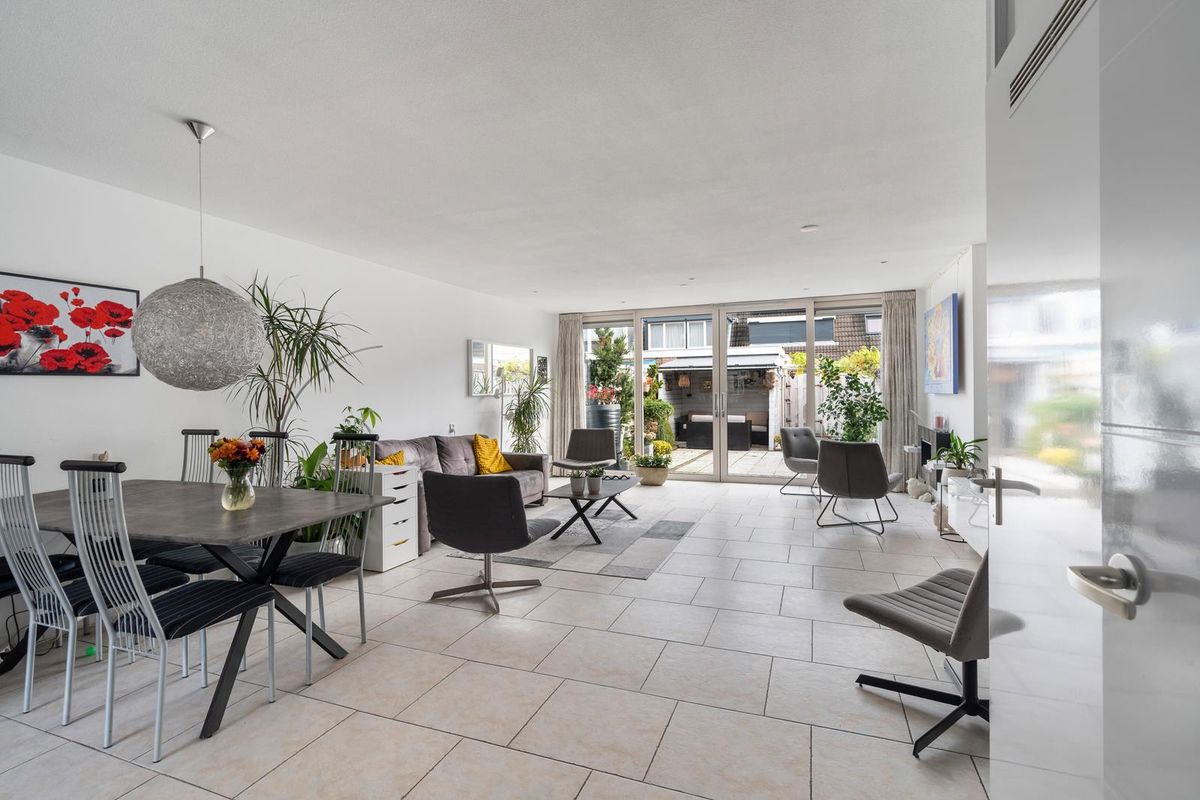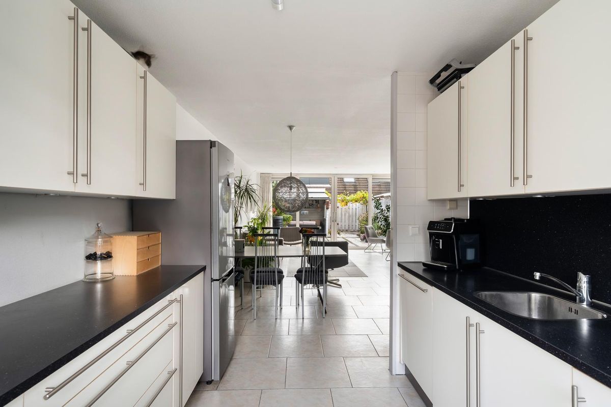 Verzorgd aangelegde voortuin met toegang tot de woning. Entree/hal met meterkast, volledig betegeld toilet en deur naar de woonkamer. De woonkamer is tuingericht en door de uitbouw aan de achterzijde heerlijk ruim. De ruimte is afgewerkt met een plavuizen vloer met vloerverwarming die ook in de hal aanwezig is. Aan de voorzijde ligt de half open keuken met een moderne inrichting en ingebouwde vaatwasmachine en afzuigkap.