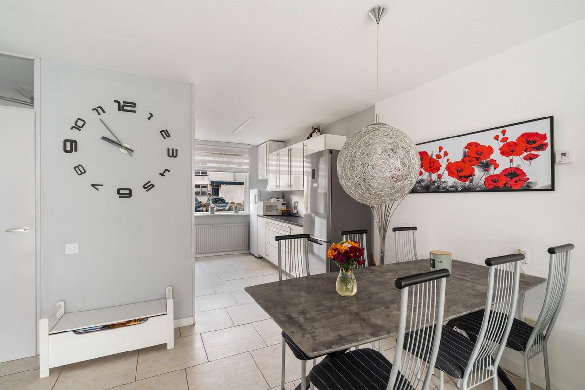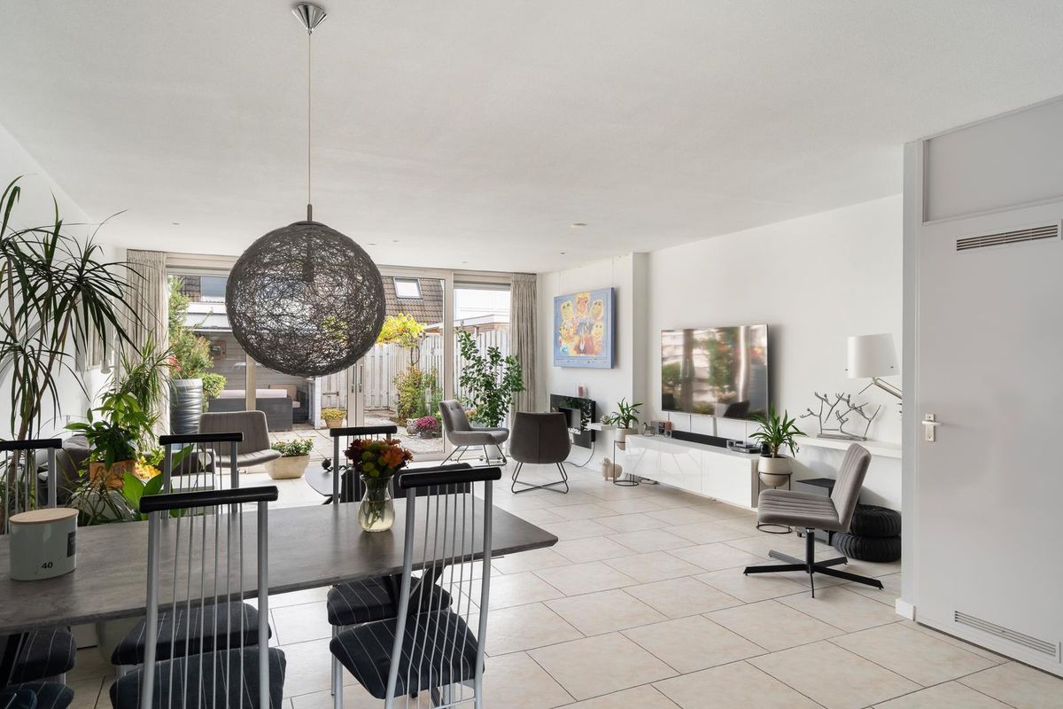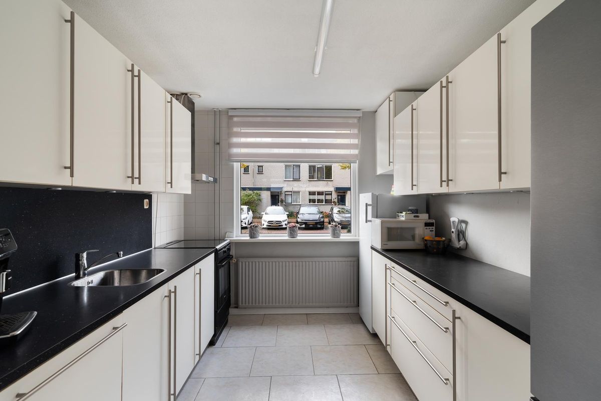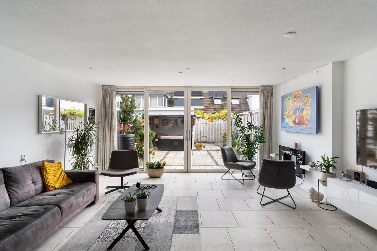 Verzorgd aangelegde voortuin met toegang tot de woning. Entree/hal met meterkast, volledig betegeld toilet en deur naar de woonkamer. De woonkamer is tuingericht en door de uitbouw aan de achterzijde heerlijk ruim. De ruimte is afgewerkt met een plavuizen vloer met vloerverwarming die ook in de hal aanwezig is. Aan de voorzijde ligt de half open keuken met een moderne inrichting en ingebouwde vaatwasmachine en afzuigkap.