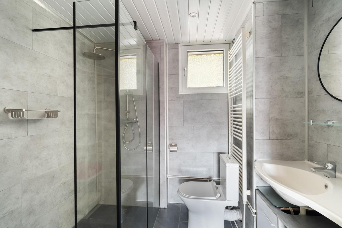 Verdieping 1: Trapopgang met fraaie verlichting in de trap, met op de 1e etage de hoofdslaapkamer aan de voorzijde. De achterzijde is uitgebreid met een dakopbouw, waardoor aan deze zijde ook 2 ruime slaapkamers liggen. Alle slaapkamers zijn afgewerkt met laminaat. De moderne badkamer is circa 5 jaar geleden vernieuwd, afgewerkt met een fraaie kunststof wandafwerking en beschikt over een inloopdouche met glazen douchewand en regen- en handdouche, wastafel, toilet en designradiator.