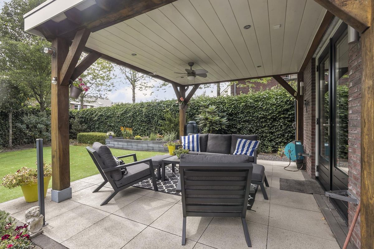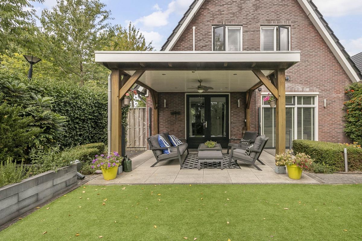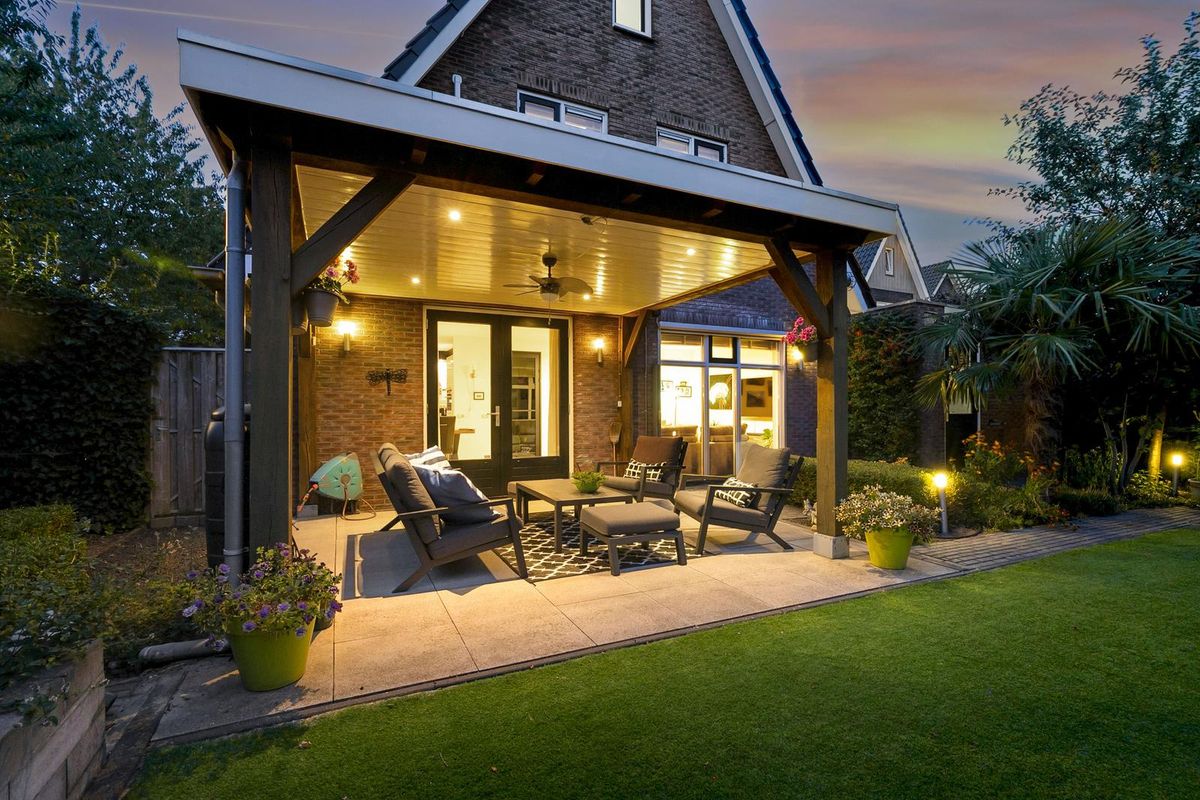 Tuin: De woning beschikt over een verzorgde voortuin en een ruime oprit. De achtertuin is sfeervol aangelegd met meerdere terrassen, bloemperken, kunstgras en diverse beplanting, waardoor je het hele jaar door geniet van een groene omgeving. Onder de overkapping met uittrekbare windschermen en ventilator heb je altijd een fijne plek om buiten te zitten. Verder is de tuin praktisch ingericht met een regenton, vorstvrije kranen aan zowel de zij- als achterkant, een elektrapunt aan de voorzijde en poorten aan beide zijden van de woning. Via de tuin heb je toegang tot de garage, die is voorzien van elektra en openslaande deuren naar de oprit.