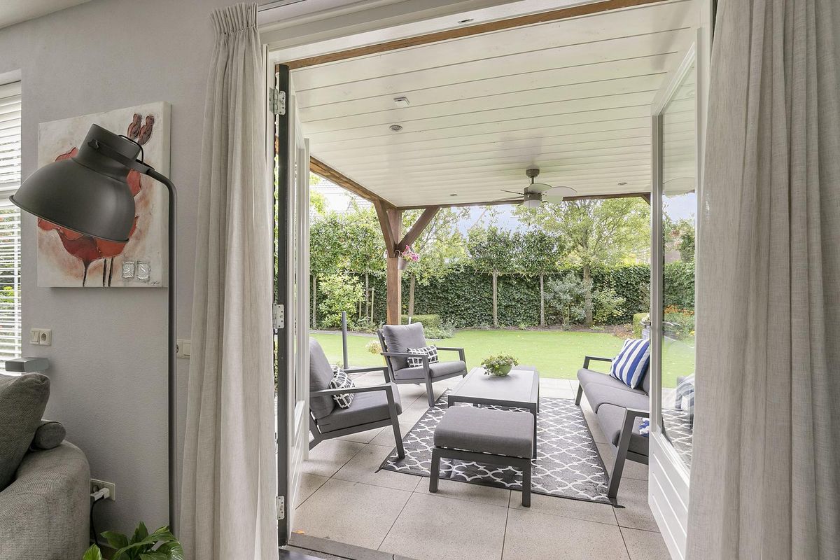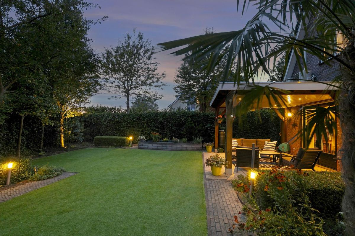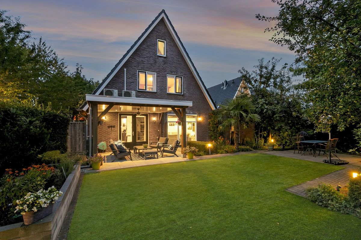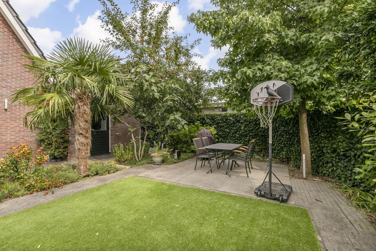 Tuin: De woning beschikt over een verzorgde voortuin en een ruime oprit. De achtertuin is sfeervol aangelegd met meerdere terrassen, bloemperken, kunstgras en diverse beplanting, waardoor je het hele jaar door geniet van een groene omgeving. Onder de overkapping met uittrekbare windschermen en ventilator heb je altijd een fijne plek om buiten te zitten. Verder is de tuin praktisch ingericht met een regenton, vorstvrije kranen aan zowel de zij- als achterkant, een elektrapunt aan de voorzijde en poorten aan beide zijden van de woning. Via de tuin heb je toegang tot de garage, die is voorzien van elektra en openslaande deuren naar de oprit.