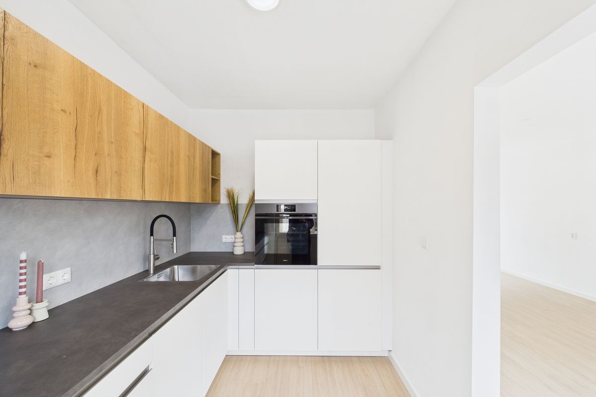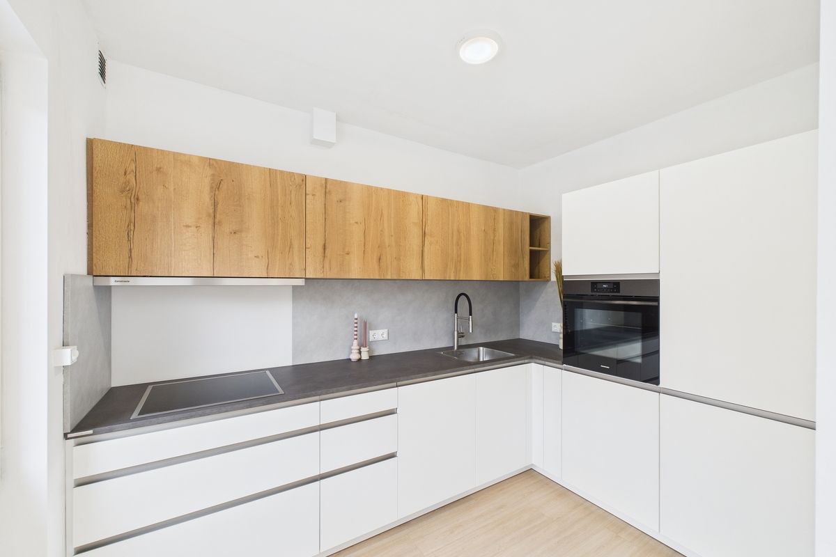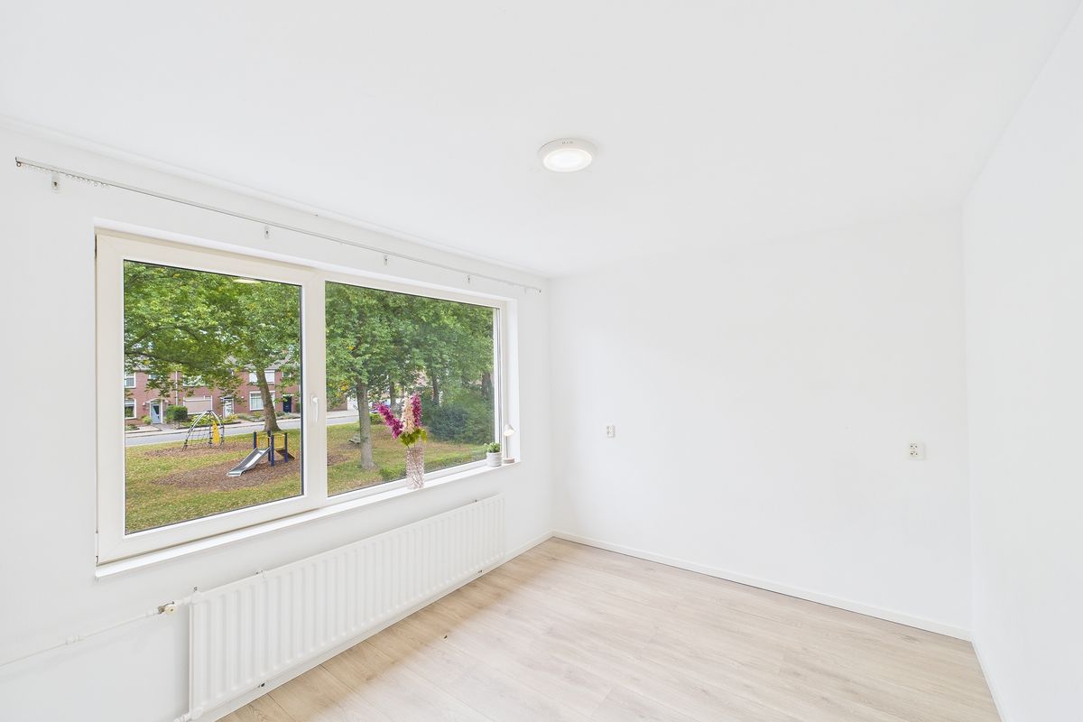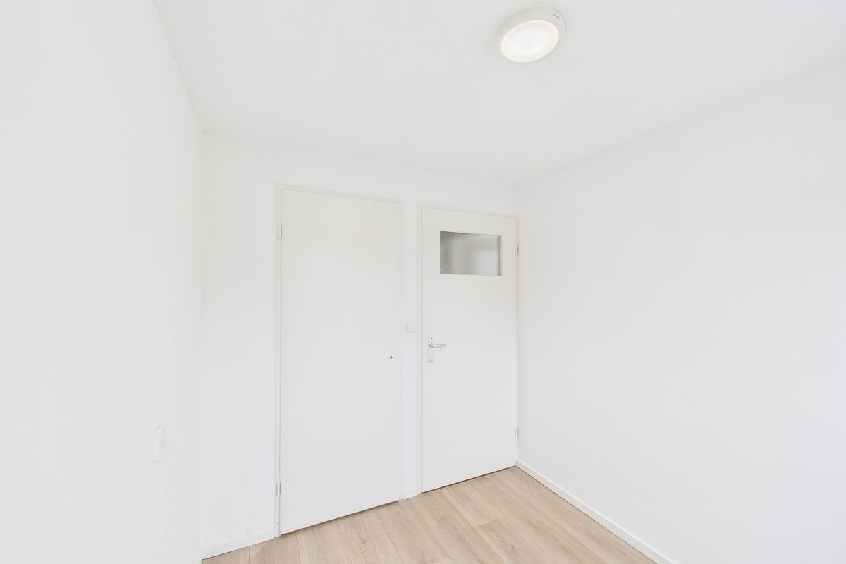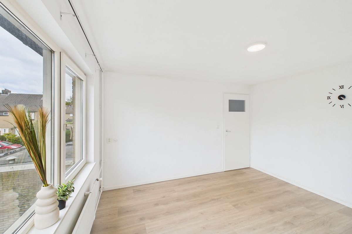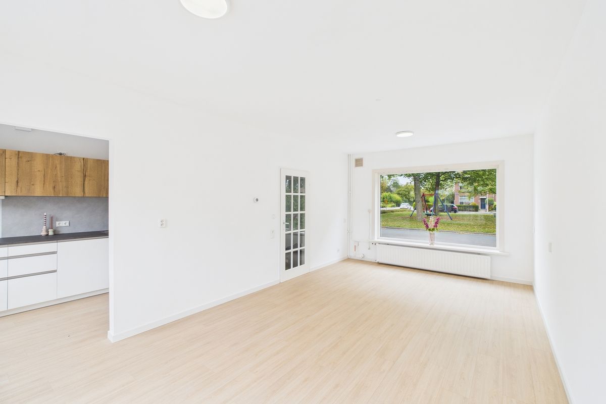 Ruime inkomhal met toegang tot de woonkamer, toilet, meterkast en trapkast. De woonkamer is heerlijk licht en afgewerkt met een nette laminaatvloer. Aansluitend vind je de moderne keuken, die volledig is vernieuwd en uitgerust met alle benodigde inbouwapparatuur zoals een vaatwasser, oven, inductiekookplaat en afzuigkap.