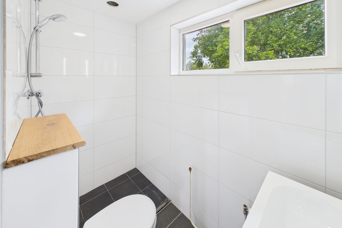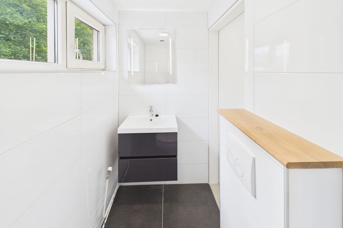 Op de eerste verdieping vind je de overloop, drie slaapkamers en de vernieuwde badkamer. De badkamer is volledig betegeld en voorzien van een douche, toilet en wastafel.