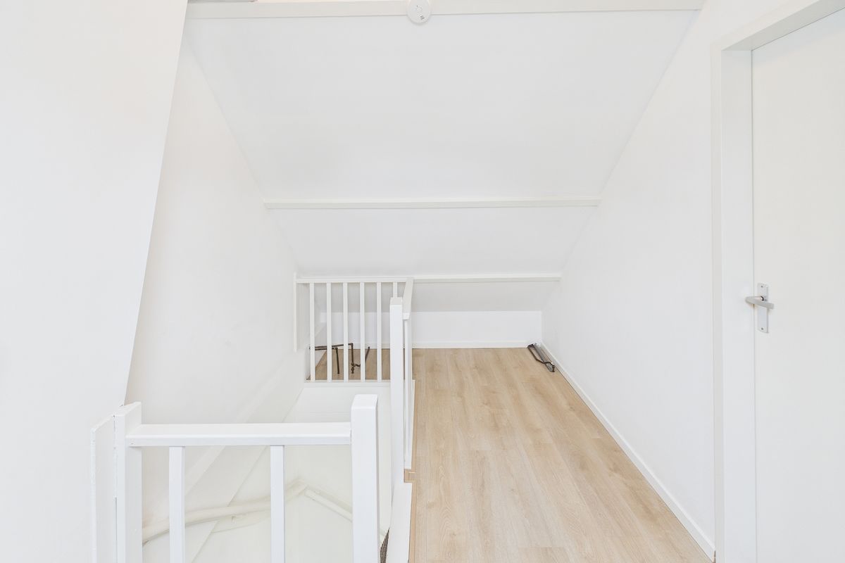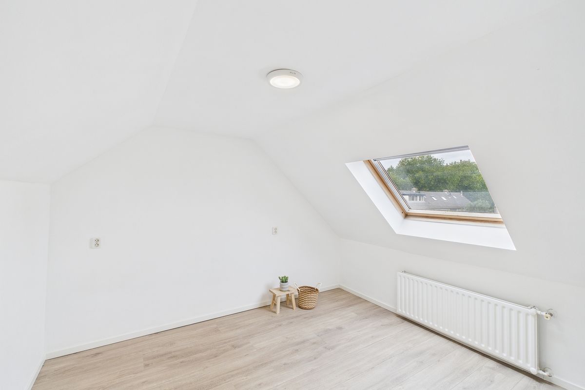 Met een vaste trap bereik je de tweede verdieping. Hier bevinden zich de overloop en de vierde slaapkamer met een Velux-dakraam. Daarnaast is er volop bergruimte aanwezig.