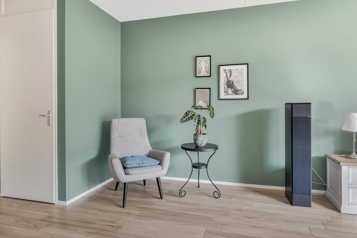 Slaapkamer 2 (ca. 12 m2) is gelegen aan de voorzijde van de woning. Door de grote raampartij biedt deze kamer veel natuurlijke lichtinval.