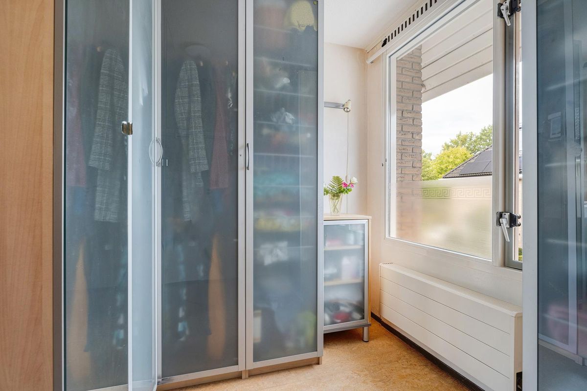 Slaapkamer 1 (ca. 16 m²), gelegen aan de achterzijde, beschikt over een vaste inbouwkast en airco.