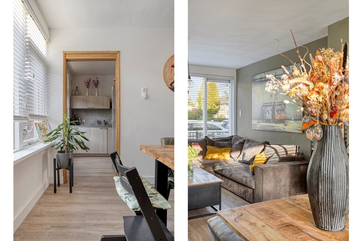 Je komt binnen in een verzorgde hal met de meterkast, het toilet en de trapopgang naar boven. Vanuit hier stap je de woonkamer in een lichte, sfeervolle ruimte met een prachtige eikenlook PVC-vloer en een nette afwerking met strakke plinten langs de muren. De grote ramen zorgen voor een prettige lichtinval, waardoor de kamer ruimtelijk en uitnodigend aanvoelt. Er is volop plaats voor een gezellige zithoek én een royale eettafel waar het gezin samenkomt voor lange avonden vol verhalen en gezelligheid.