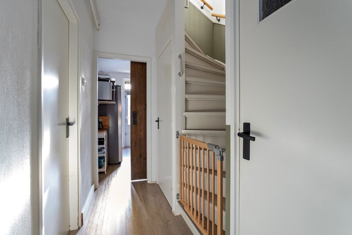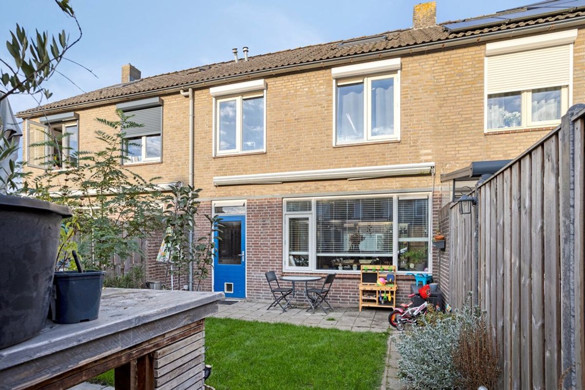 De achtertuin ligt op het zuidwesten en heeft een diepte van circa 11 meter. Daardoor is er op elk moment van de dag wel een zonnestraal te vinden. De tuin is onderhoudsvriendelijk ingericht met een verhard terras en een zonnescherm, waardoor je hier het hele jaar door prettig buiten kunt zitten. Dankzij de diepte en indeling is er ruimte genoeg om meerdere zithoeken te creëren perfect om te genieten van zowel zon als schaduw.