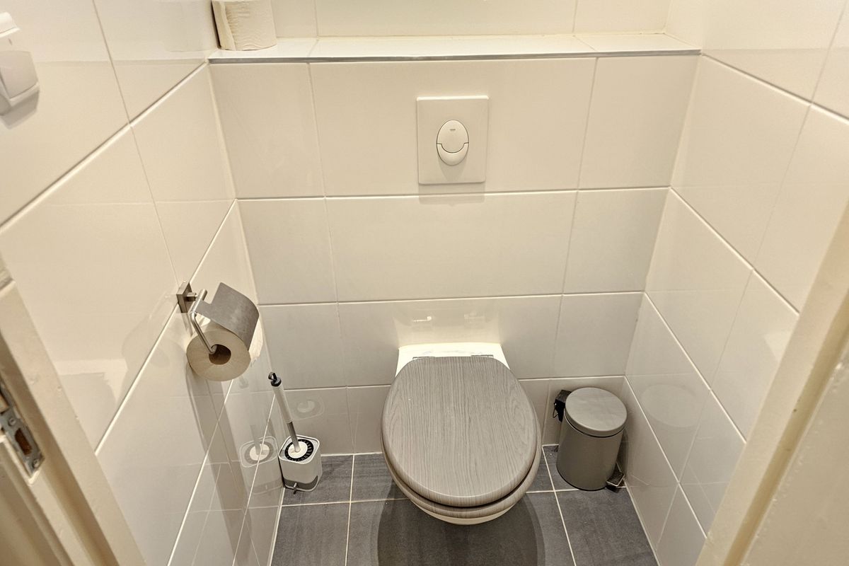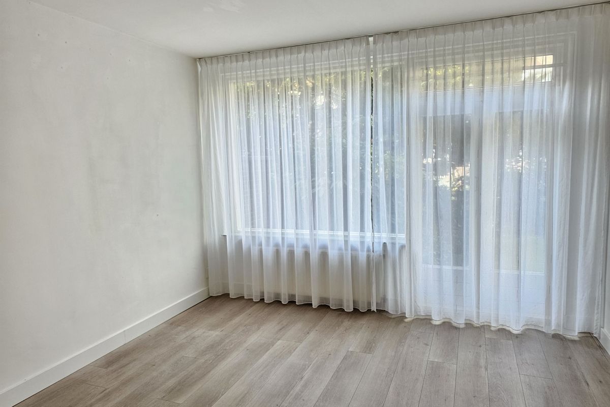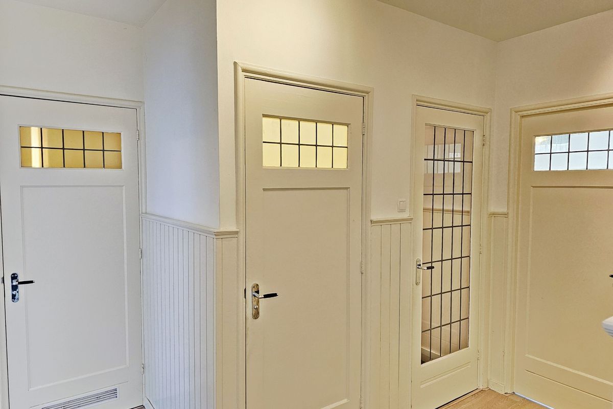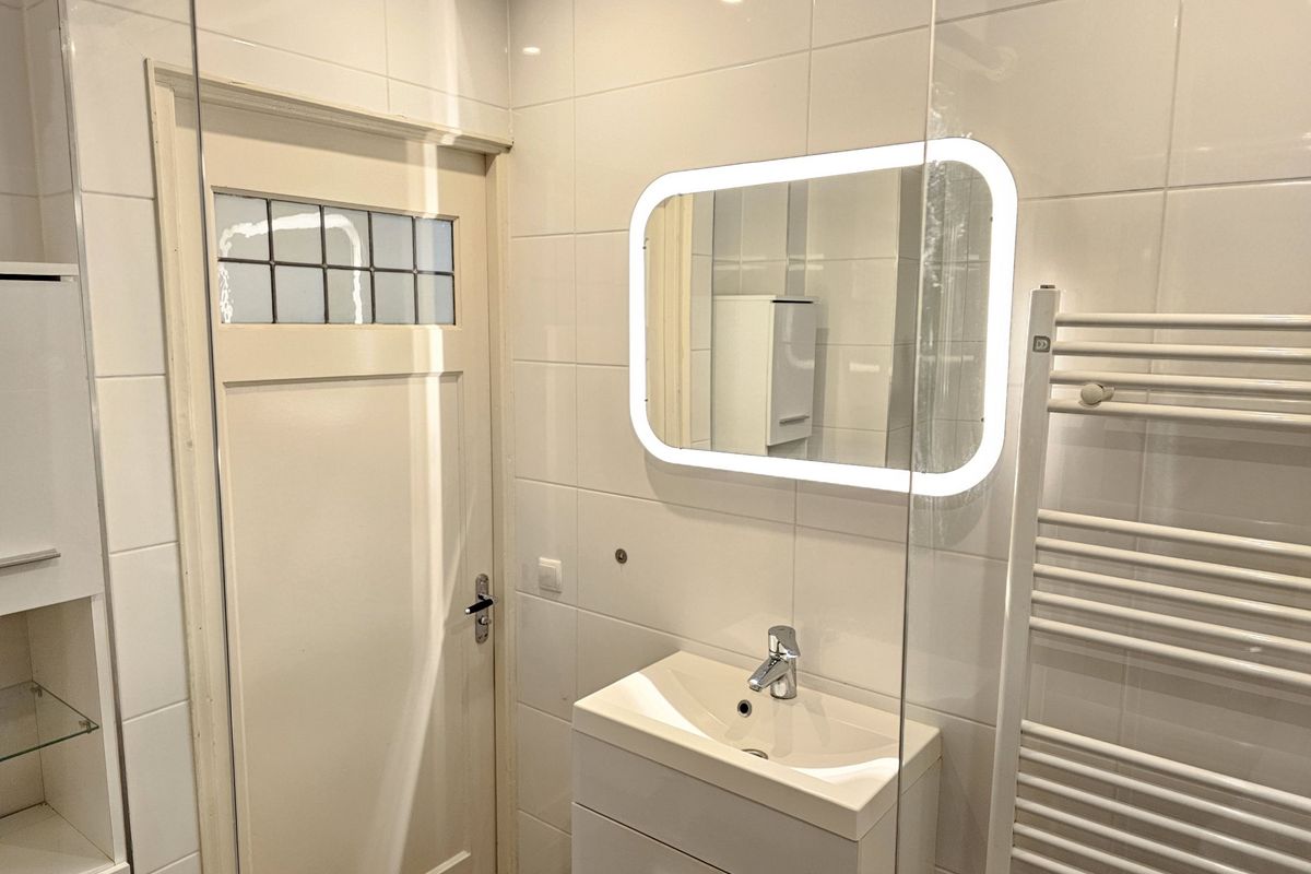 Entree/vestibule, ruime hal 5m² waar alle kamers op uitkomen, riante woonkamer bestaande uit voorkamer 17m² met glas in lood deuren naar achterkamer 17m² met laminaatvloer, gestuukte wanden en openslaande deuren naar de achtertuin, moderne gesloten keuken met koelkast, gaskookplaat, wasemkap, combi magnetron en vaatwasmachine alsmede de HR-combiketel en deur naar de tuin, twee slaapkamers van 9 en 11.5m² waarbij de kleinere slaapkamer een deur heeft naar de tuin, moderne badkamer met inloopdouche met zowel een handdouche als een in het plafond geïntegreerde regendouche, wastafelmeubel, designradiator en opstelplaats voor wasmachine en droger, separaat modern toilet met wandcloset.