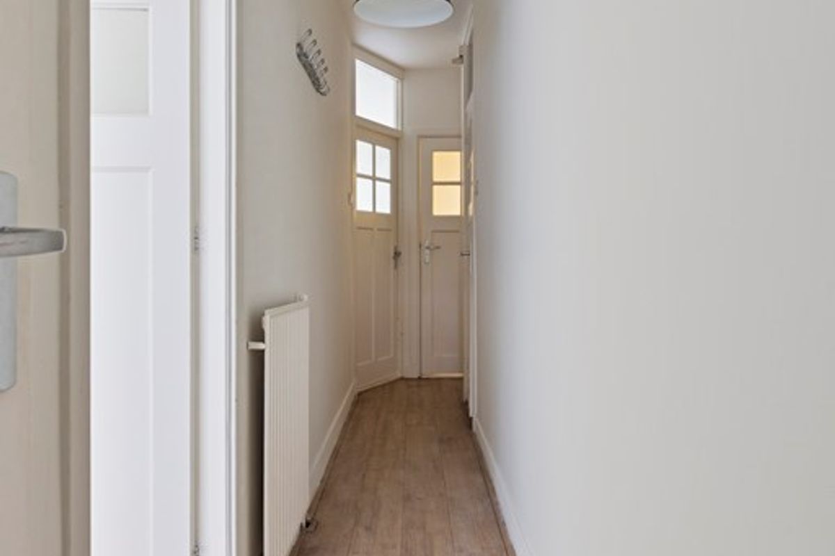 Via de entree kom je binnen in het tochtportaal, dat toegang geeft tot de lange hal. Vanaf hier bereik je alle vertrekken van de woning. Aan de achterzijde vind je de lichte woon- en eetkamer: een prettige leefruimte met directe toegang tot de diepe, fraai achtertuin. Deze tuin is gelegen op het noordwesten en voorzien van een praktische houten schuur.