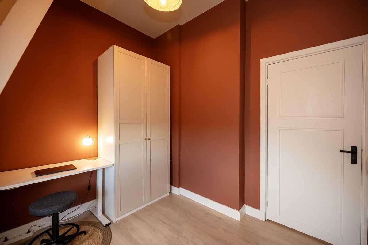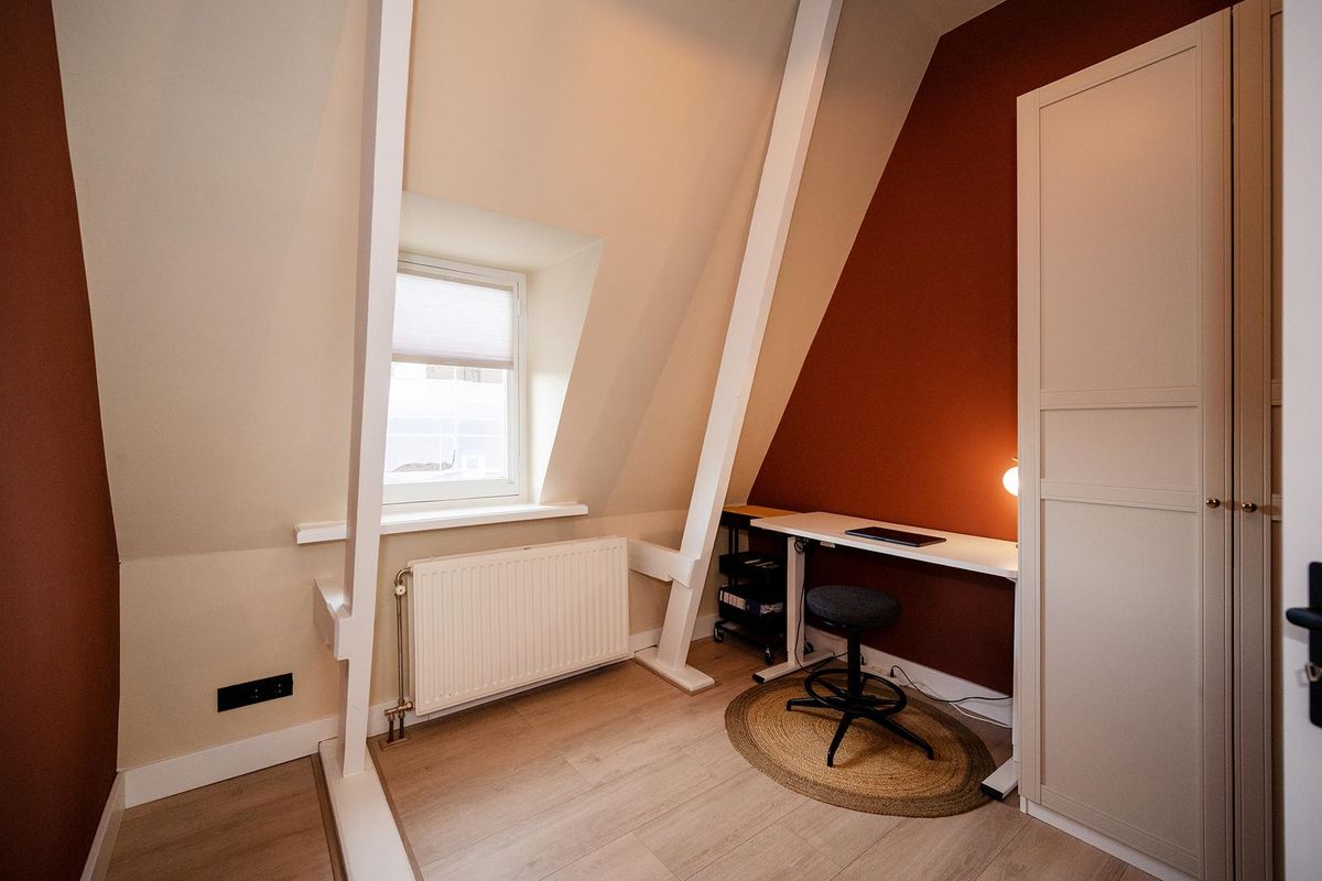 De woning beschikt over twee ruime slaapkamers. De hoofdslaapkamer heeft een comfortabel tweepersoonsbed en voldoende kastruimte. De tweede kamer is momenteel ingericht als thuiswerkplek, maar kan ook uitstekend dienen als logeerkamer of hobbyruimte.