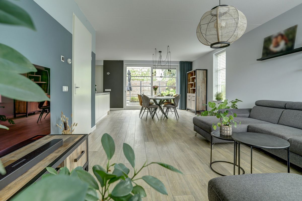 Voorin is er een fijne plek voor een gezellige zithoek. En dat uitzicht vanaf de bank? Dat maakt het plaatje helemaal af. Achterin vind je volop ruimte voor een grote eettafel, perfect om met het gezin te tafelen terwijl je uitkijkt over de knusse achtertuin.