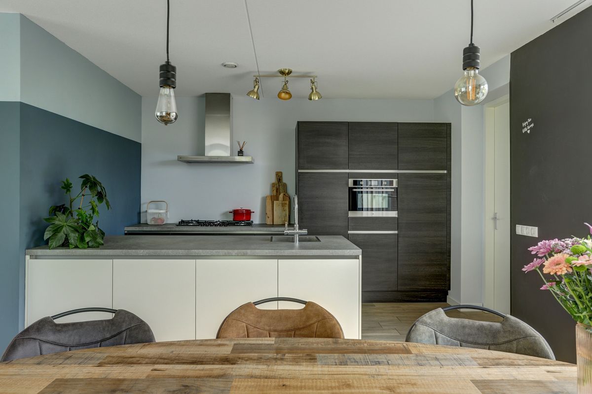 De keuken is niet alleen mooi om te zien, maar ook van alle gemakken voorzien. Denk aan een 6-pits gaskookplaat met strakke afzuigkap, een combi-magnetron, koelkast, vaatwasser én een spoelbak met Quookerkraan.