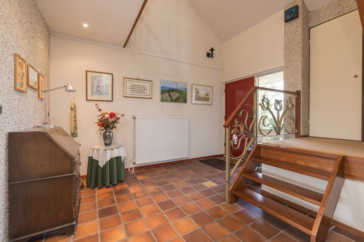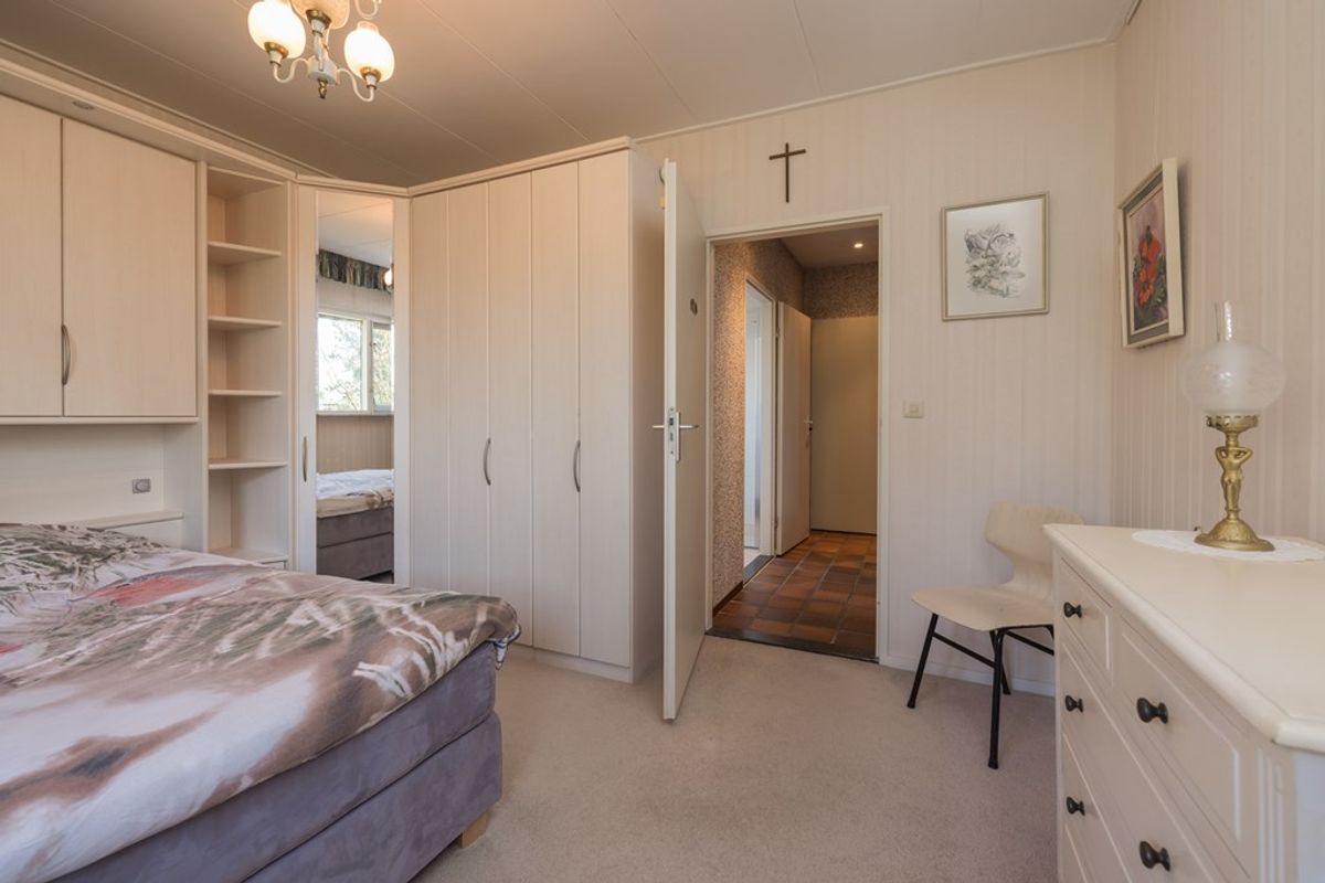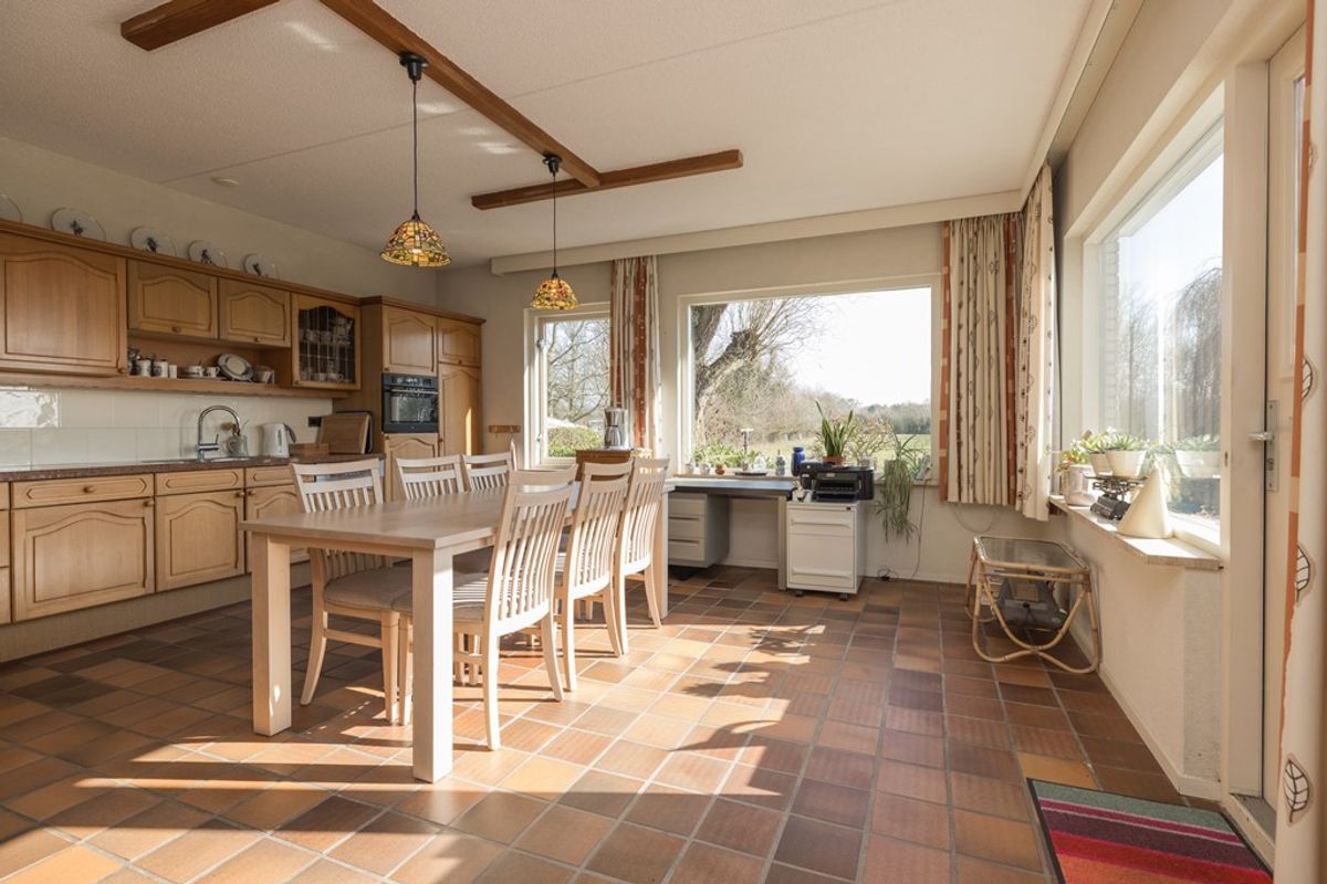 Entree, een ruime hal met de garderobe, de meterkast en de toiletruimte met een wandcloset en een fonteintje. Via de hal is de aan de voorzijde gelegen slaapkamer bereikbaar, deze kamer is voorzien van dubbele beglazing en horren. De moderne en in een grijze kleur betegelde badkamer heeft een douchecabine, een wandcloset, een wastafelmeubel, een spiegelkast en vloerverwarming. Via de hal komt u in de meer dan riante woonkamer met een plavuizenvloer, een houtkachel en een convectorput aan de voor- en aan de achterzijde. De schuifpui biedt toegang tot het zonneterras en biedt een fantastisch weids uitzicht over de grasweide. Via de woonkamer is de riante woonkeuken te bereiken met diverse inbouwapparatuur zoals een inductiekookplaat met afzuigkap, een dubbele spoelbak, een vaatwasser, een koelkast, een combimagnetron en een stenen aanrechtblad. Via de keuken is de bijkeuken te bereiken met de opstelling van de wasapparatuur, deze ruimte heeft ook nog een ingebouwde kast, via de bijkeuken is de garage inpandig bereikbaar.