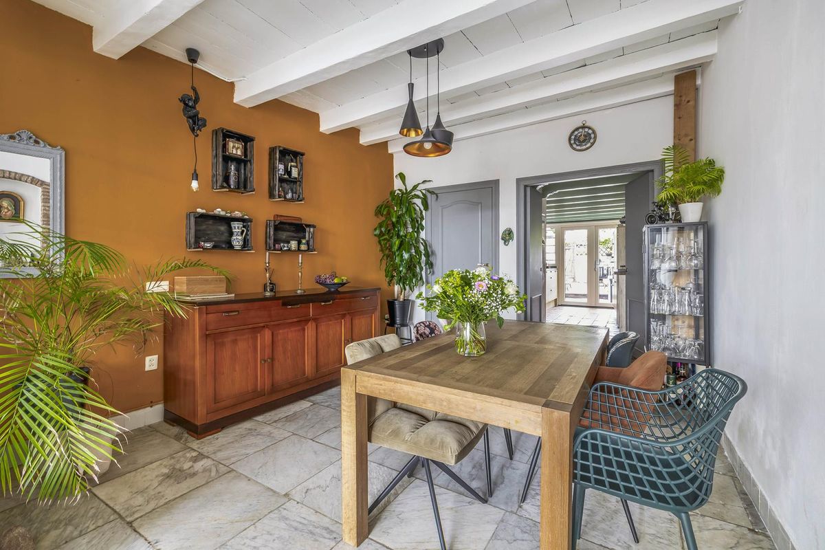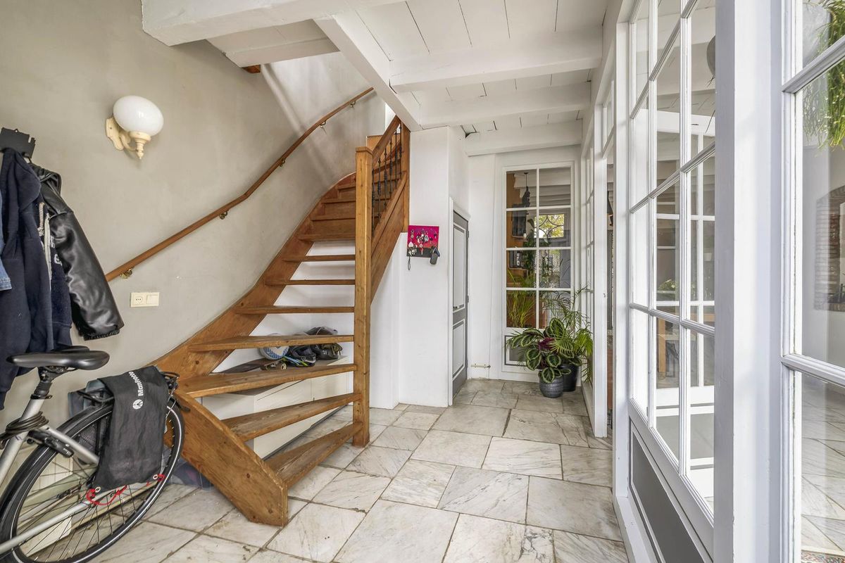 Entree/hal met de meterkast, het toilet met fonteintje en de trapopgang naar de verdieping. Vanuit de hal is er toegang tot de salon/eetkamer. Deze fraaie ruimte met het hoge plafond is aangenaam licht en biedt een fantastisch uitzicht op de haven. Het balkenplafond voegt extra sfeer toe aan de ruimte.