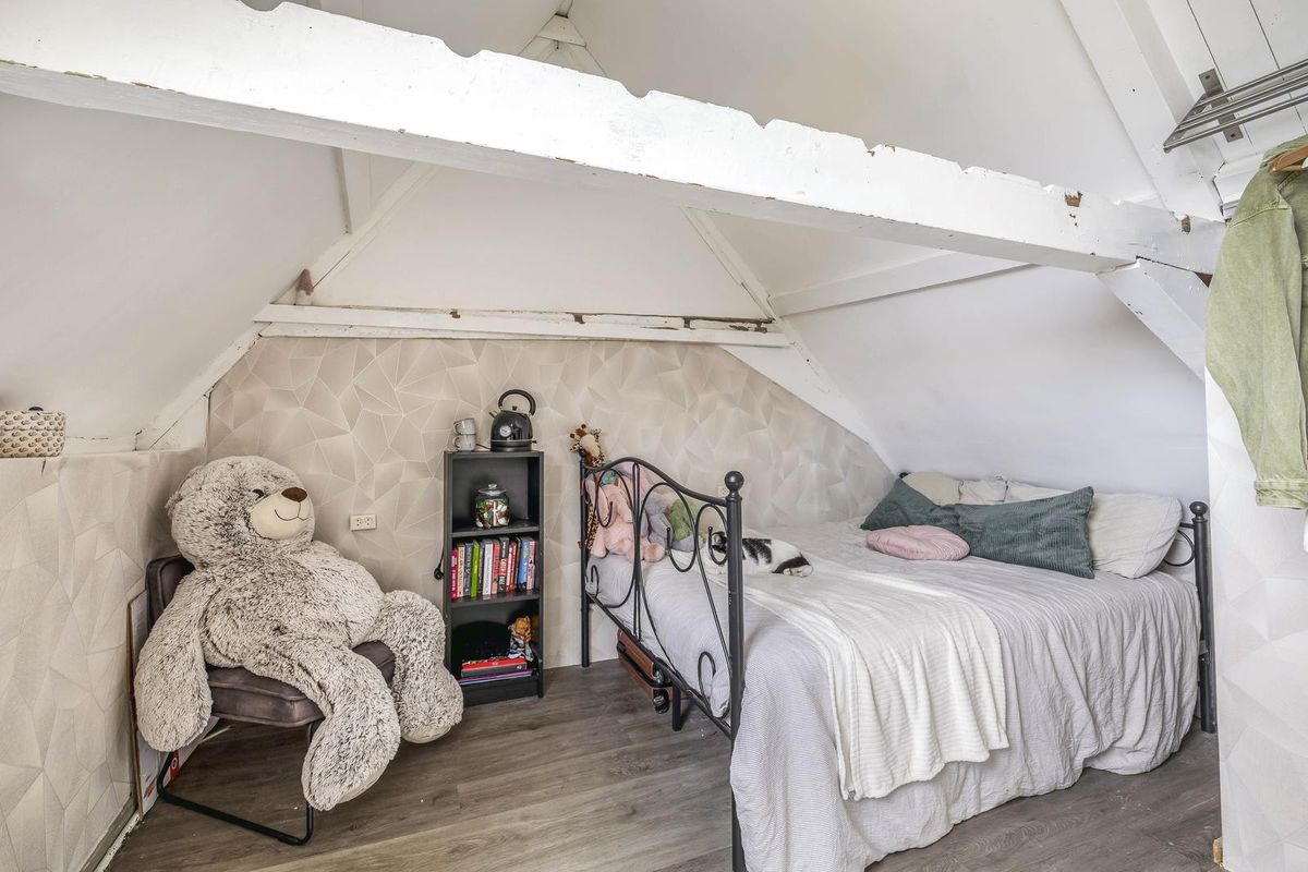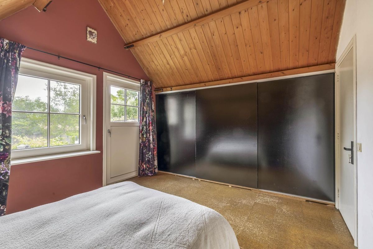 Aan de achterzijde ligt de slaapkamer, voorzien van een vaste kast en een Frans balkon.