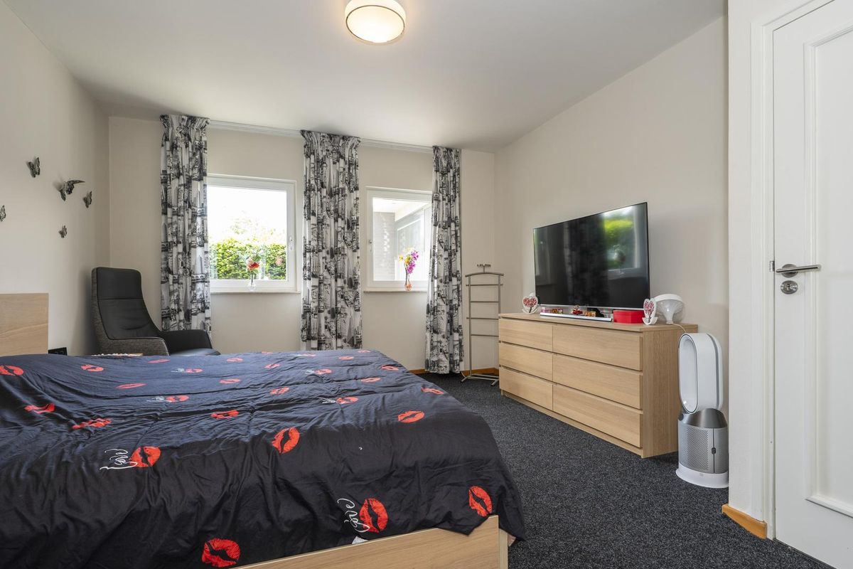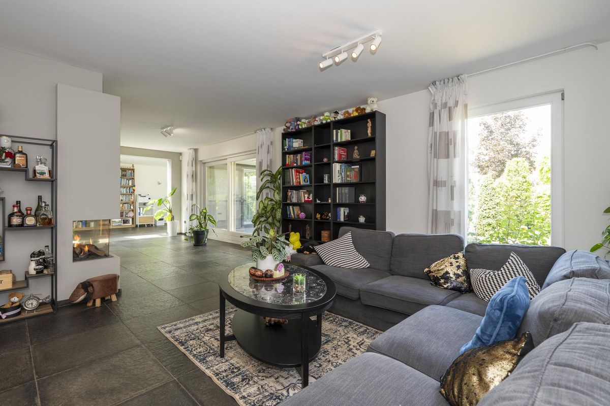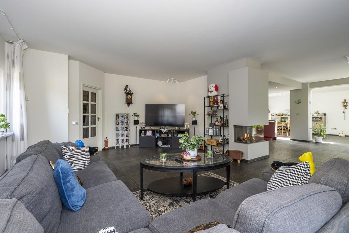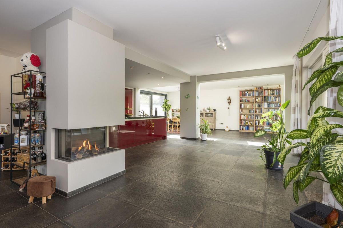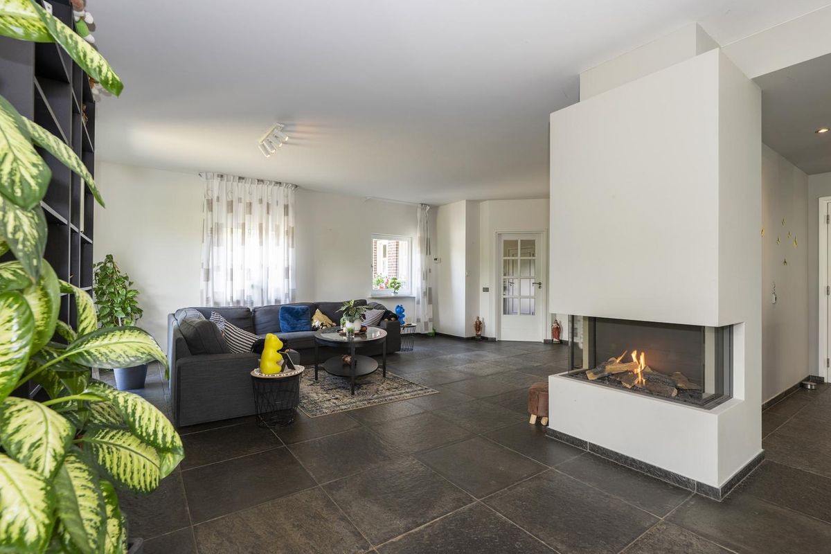 De woonkamer bevindt zich aan de voorzijde en beschikt over een sfeervolle gashaard.