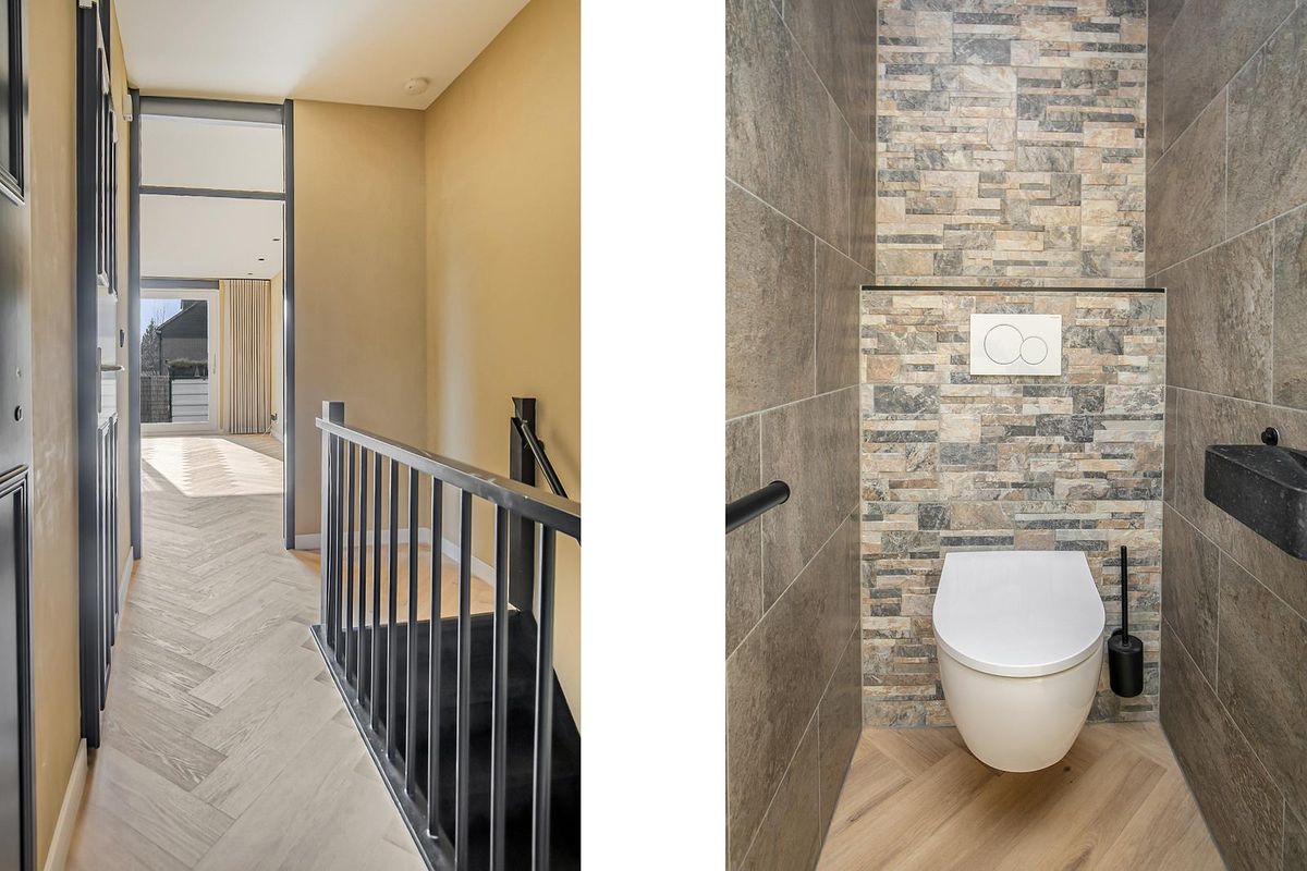 De separaat gelegen toiletruimte beschikt over een zwevend toilet en een fonteintje.