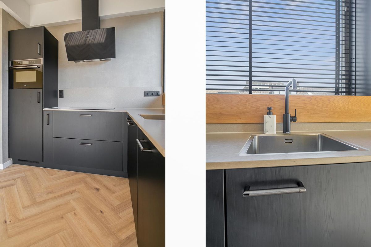 De open keuken sluit naadloos aan op de woonkamer en is volledig uitgerust met moderne inbouwapparatuur, waaronder een inductiekookplaat, koelkast, afzuigkap, combi-oven en combi-magnetron en vaatwasser. Koken en gezellig tafelen doet u hier met plezier.