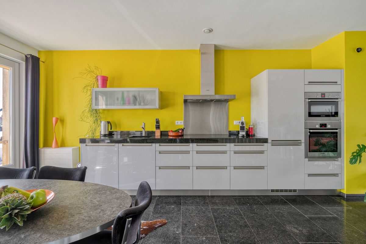 • Luxe open eetkeuken voorzien van o.a. keramische kookplaat, koel-vriescombinatie, vaatwasser, oven, combimagnetron en veel kastruimte