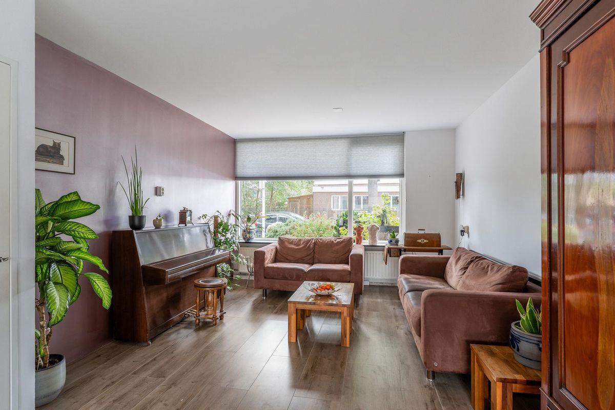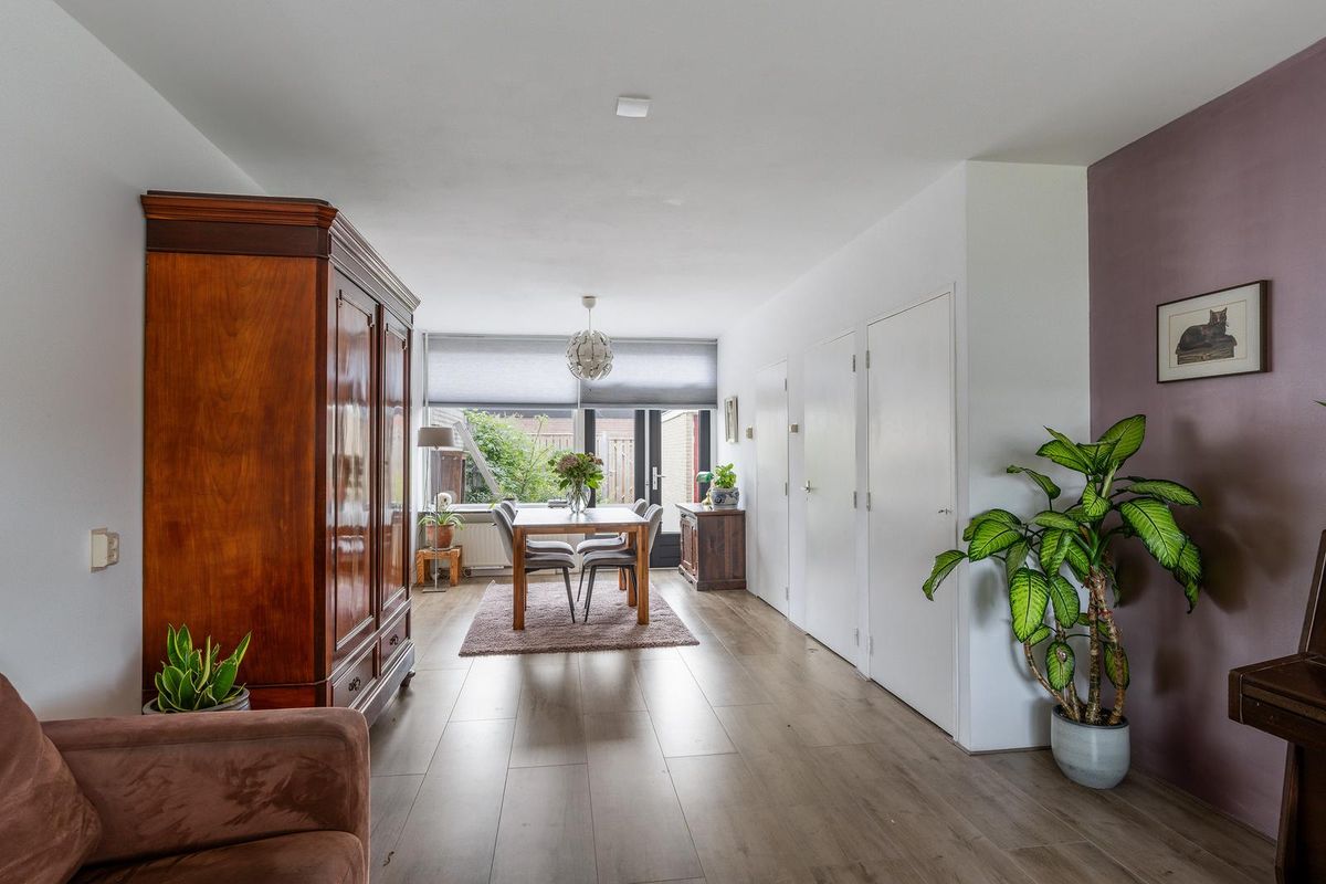 Riante en sfeervolle 'doorzon' woonkamer met 2 vaste kasten en openslaande deuren aan de achterzijde.