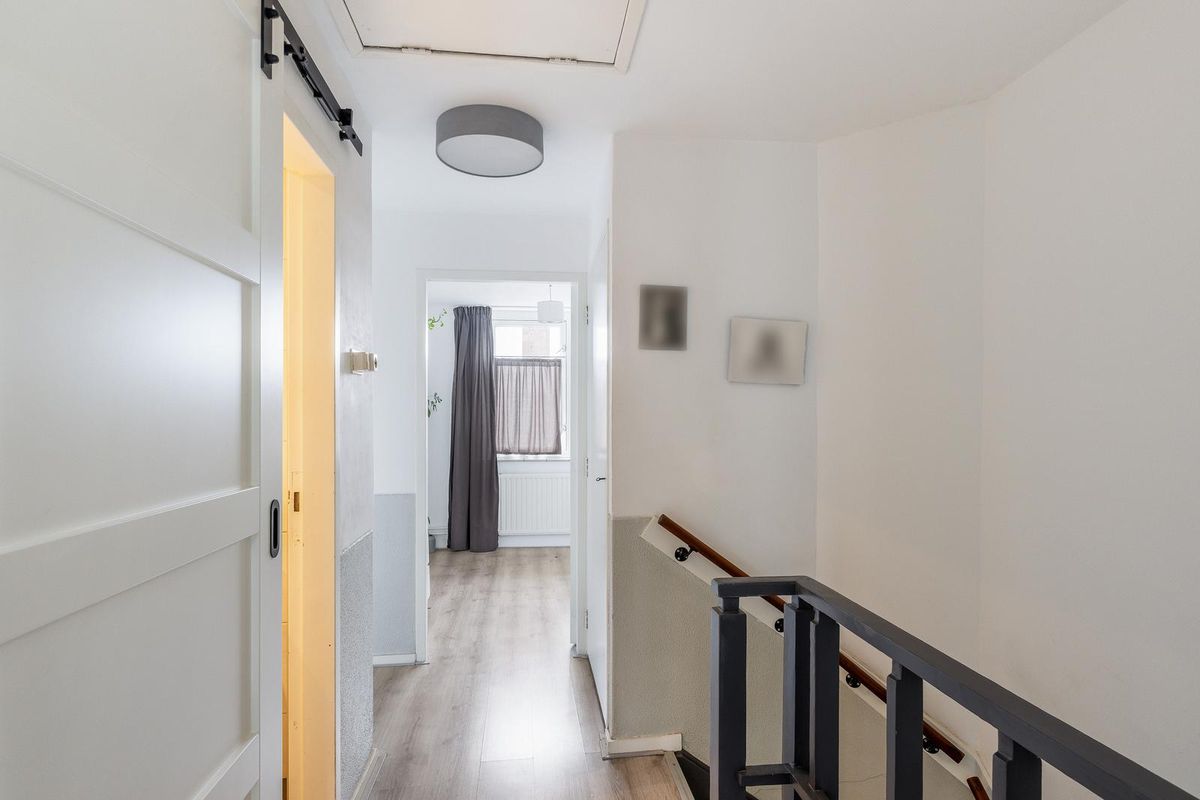 Overloop met vaste kast, toegang tot 4 slaapkamers, de badkamer en de zolder middels een vlizoluik.