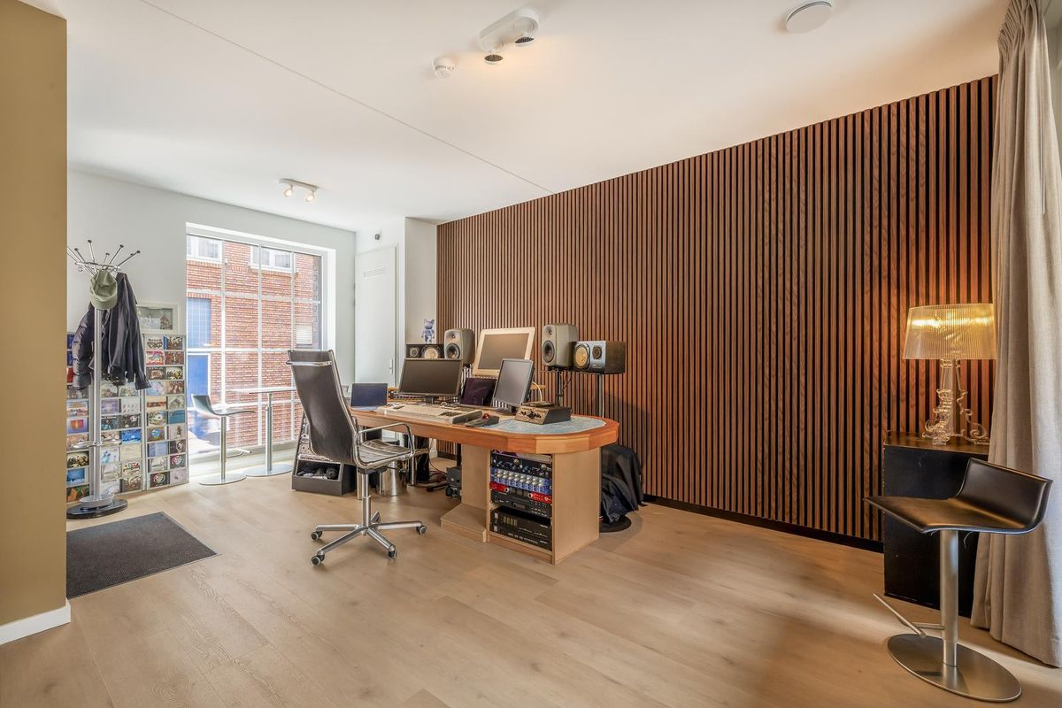 De begane grond zou uitstekend kunnen dienen als bijvoorbeeld kantoor, werkkamer, hobbykamer of speelkamer. Door de hoogte en vele ramen heeft de woning een fantastische natuurlijke lichtinval. In de gezamenlijke parkeergarage zijn een eigen parkeerplaats en berging aanwezig.