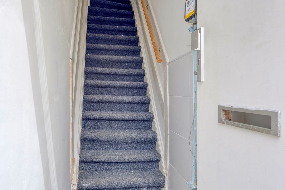 Eenvoudige keuken (2,63 x 1,84), balkon circa 6 m², Trap naar…