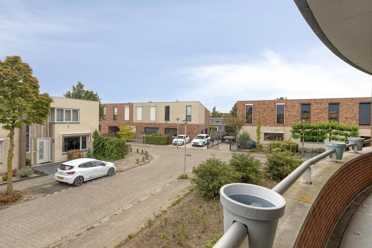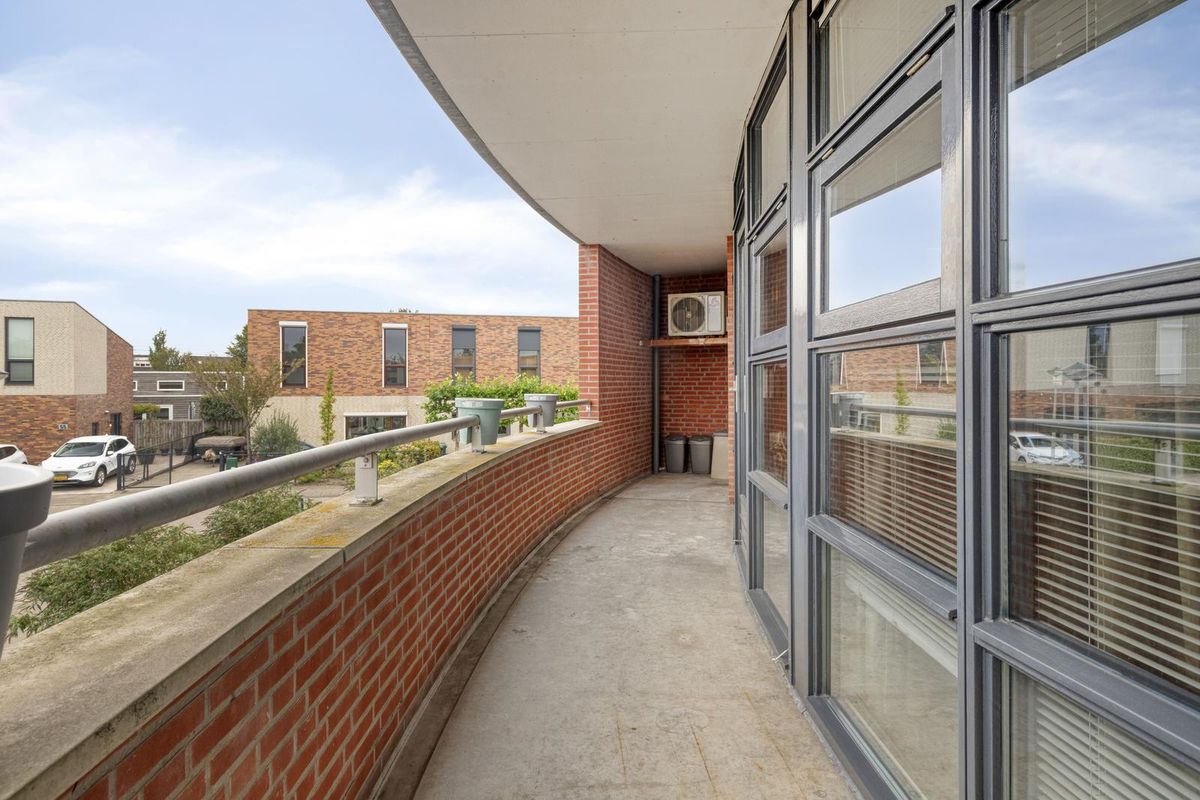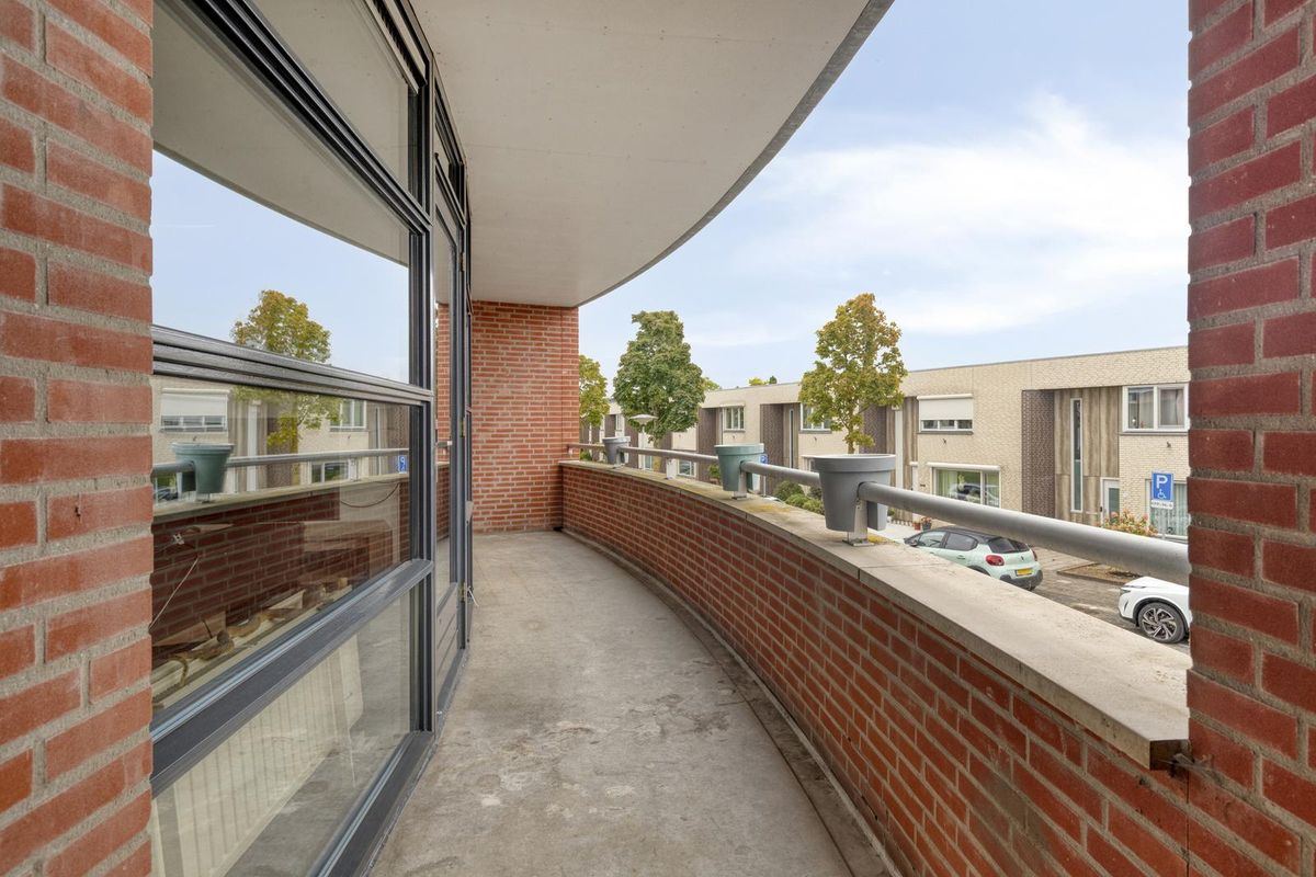 Het balkon strekt zich uit over de volledige breedte van het appartement en is bereikbaar via de woonkamer. Dankzij de royale afmetingen is er plek voor een gezellige loungeset of eettafel, perfect om buiten te genieten van het uitzicht en de rust in de wijk.