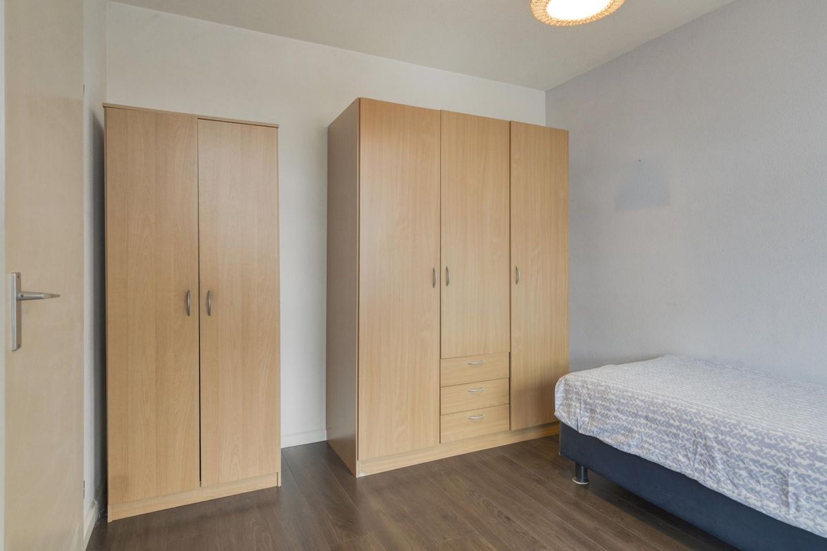 Het appartement beschikt over twee slaapkamers. De master bedroom ligt aan de balkonzijde en profiteert van veel lichtinval. Er is voldoende ruimte voor een tweepersoonsbed en een kast, een heerlijke, rustige plek om de dag te beginnen. De tweede slaapkamer is wat compacter en daardoor ideaal te gebruiken als logeer-, werk- of kledingkamer. De badkamer is bereikbaar via de hal en is uitgerust met een douche en een wastafel met meubel. Het toilet is separaat, wat zorgt voor extra comfort.