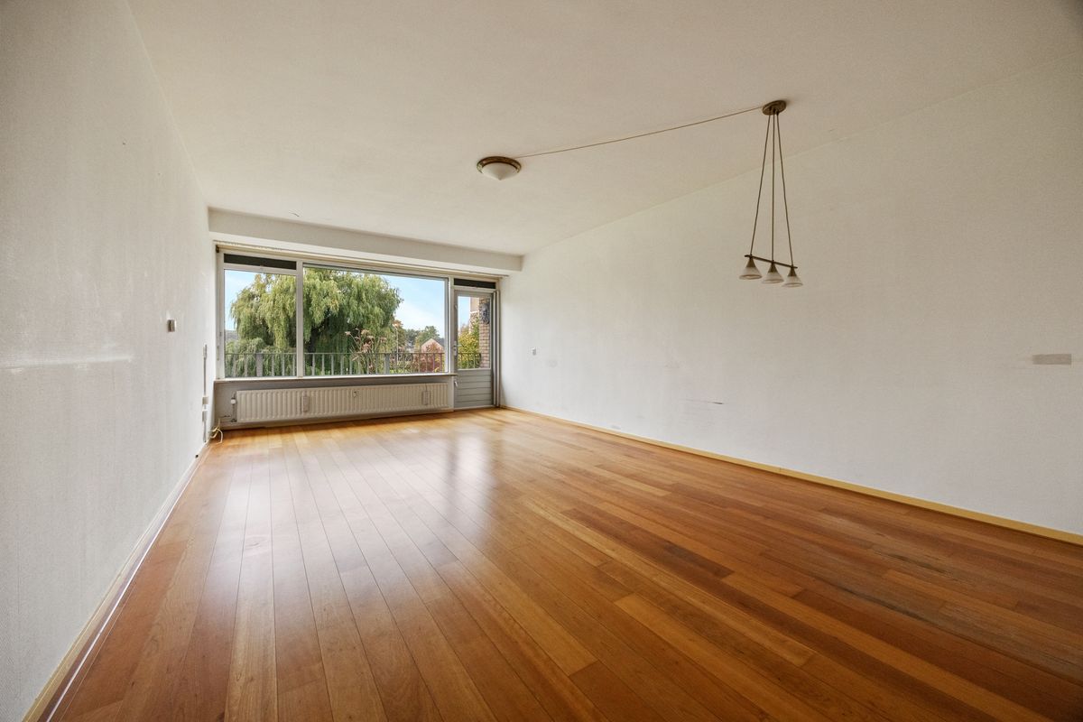 Via de hal lopen we verder naar de woonkamer, gelegen aan de achterzijde van de woning. Dankzij het grote raampartij en de deur naar het balkon valt er veel licht binnen, waardoor de kamer prettig en uitnodigend aanvoelt. De woonkamer biedt voldoende ruimte voor een comfortabele zithoek, een mooie salontafel en een complete tv-opstelling. Ook kun je een grote eettafel plaatsen met vier of zes stoelen. Vervolgens blijft er nog voldoende bewegingsruimte over om een warme, leefbare sfeer te creëren.