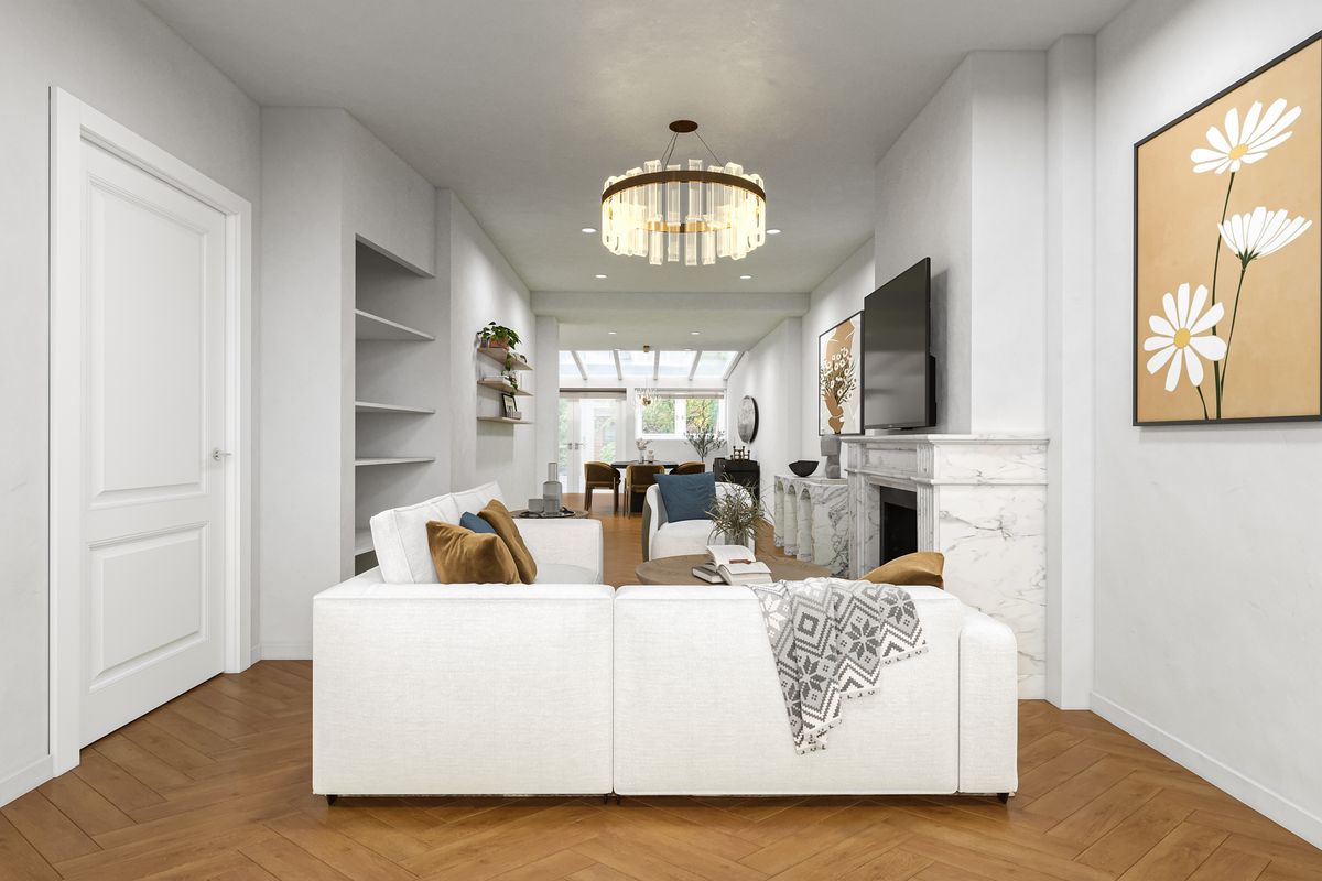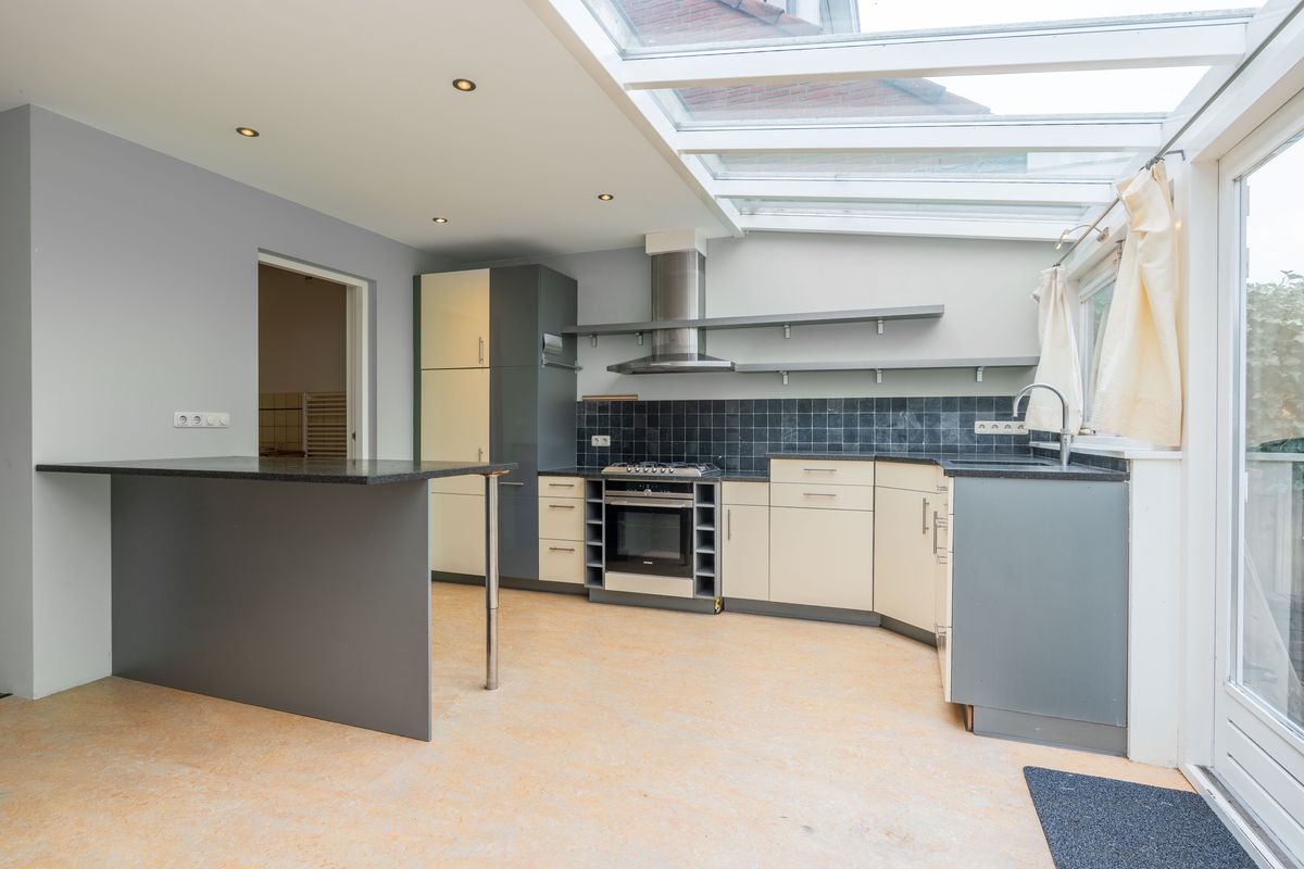 Begane grond Ruime entree met betegelde vloer, vernieuwde meterkast, verdiepte trapkast en toilet met fontein. De sfeervolle, uitgebouwde woonkamer (met lichtstraat) beschikt over een fraaie parketvloer en een ingebouwde houtkachel met schouw. Aansluitend is een ruime woon-leefkeuken met veel lichtinval door de vele ramen met uitzicht op de tuin en een gedeeltelijk glazen dak/serre. Ook is er toegang tot de zonnige achtertuin via openslaande dubbele deuren. Deze ruimte vormt het hart van het huis, een echte eyecatcher waar koken, eten en samenzijn perfect samenkomen. Aansluitend bevindt zich een ruime pantry/bijkeuken, die op praktische wijze is ingericht en voorzien van een aansluiting voor zowel wasmachine als droger. Deze ruimte biedt daarnaast extra opbergruimte voor voorraad of keukenapparatuur.