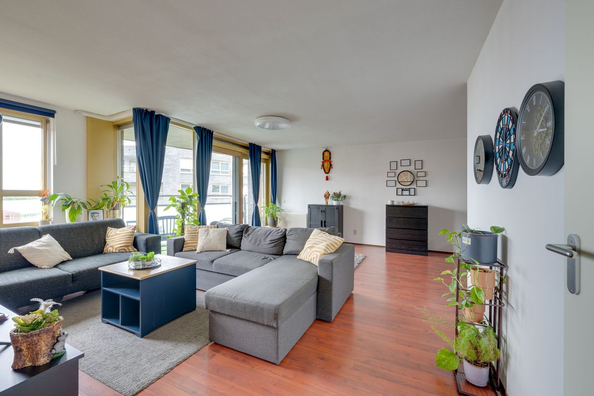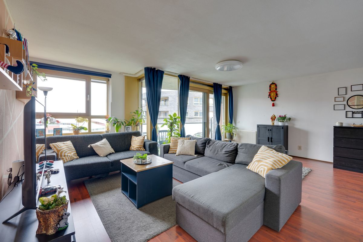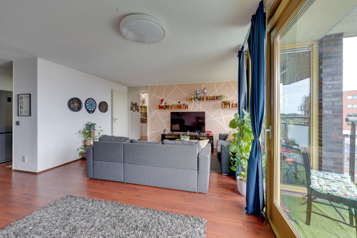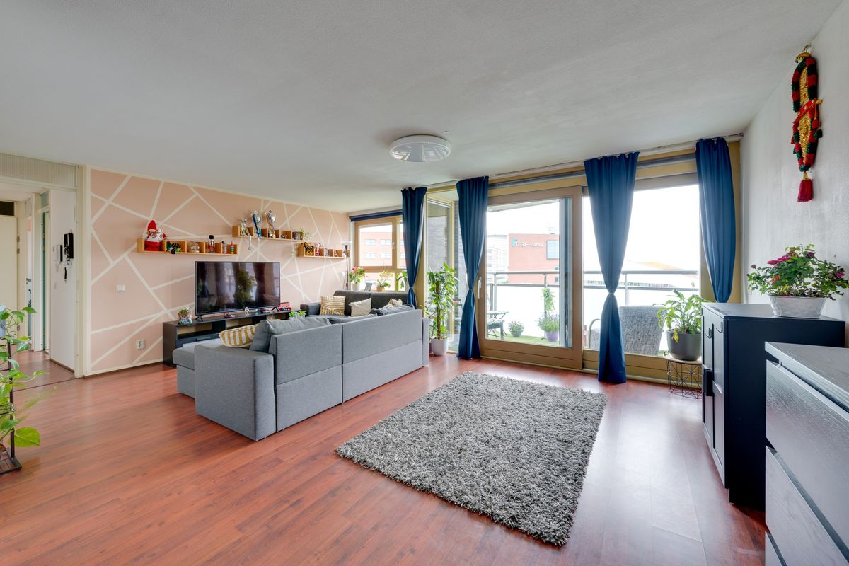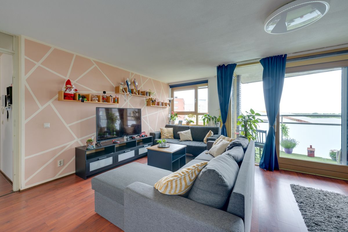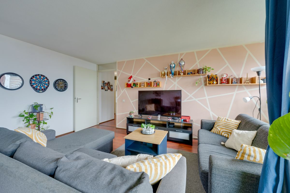 Via de hal toegang tot de ruime woonkamer welke middels een schuifpui toegang geeft tot het zonnige balkon. Deze ligt op het westen. De wanden en het plafond zijn, net als de rest van de woning, netjes afgewerkt en in een lichte kleurstelling. De gehele woning is afgewerkt met een prachtige laminaatvloer.